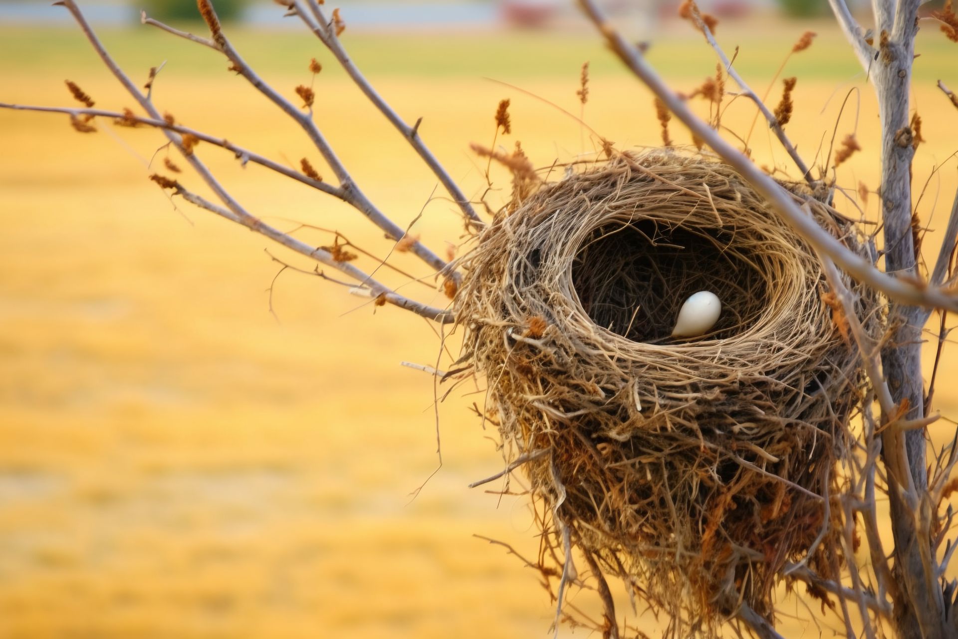 三个枝丫托举着一垛鸟巢