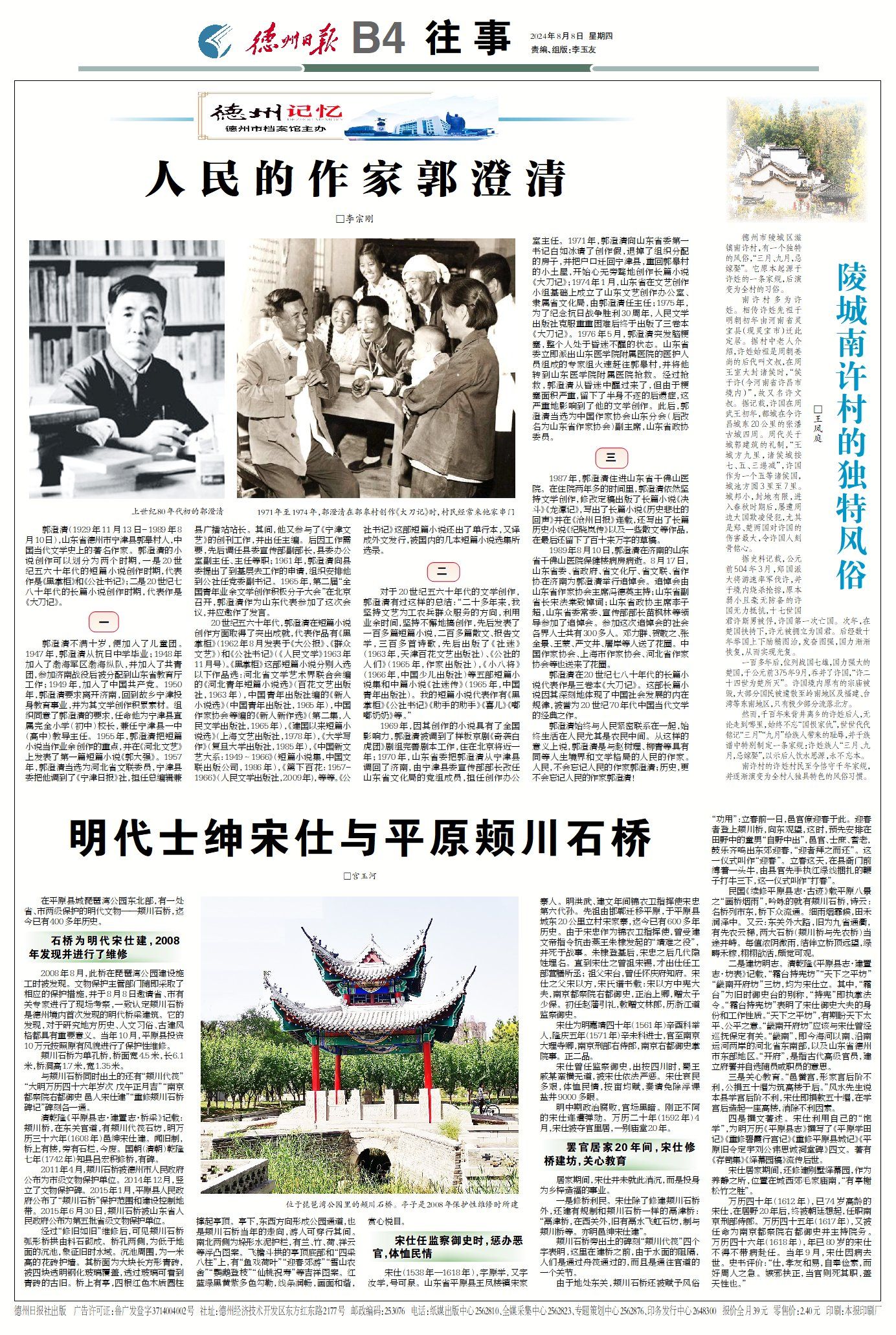 一是修桥利民。宋仕除了修建颊川石桥外,还建有规制和颊川石桥一样的鬲津桥:“鬲津桥,在西关外,旧有鬲水飞虹石坊,制与颊川桥等。亦明邑绅宋仕建”。