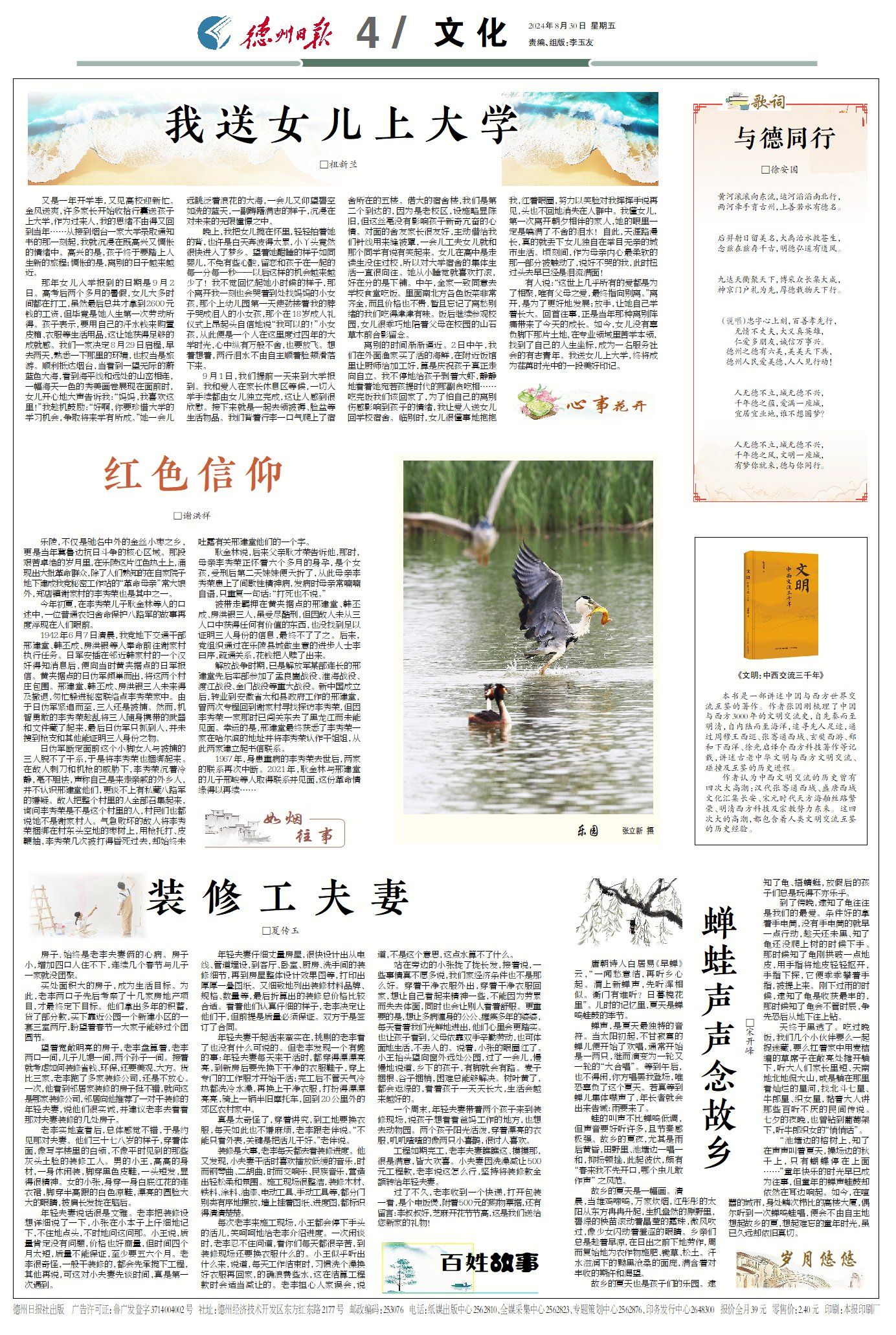 故乡的夏天是一幅画。清晨,当雄鸡啼鸣,万家炊烟,红彤彤的太阳从东方冉冉升起,生机盎然的原野里,碧绿的秧苗滚动着晶莹的露珠,微风吹过,像少女闪动着羞涩的眼睛。乡亲们总是趁着早凉,在日出之前下地劳作,周而复始地为农作物施肥、锄草、松土。汗水滋润下的黝黑沧桑的面庞,满含着对丰收的期许和渴望。