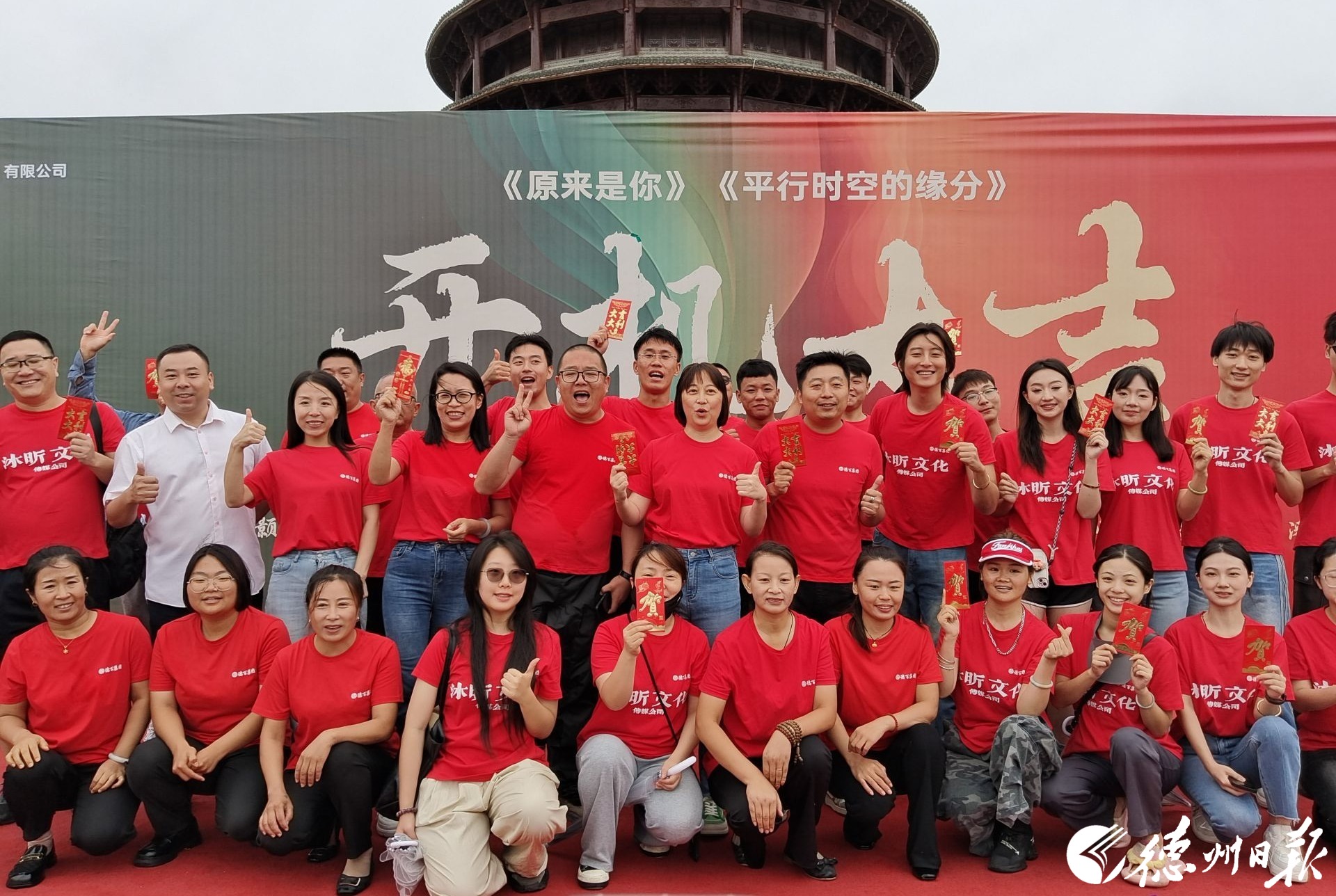 9月10日,精品短剧《原来是你》《平行时空的缘分》在夏津德百温泉旅游小镇德影城・多宝楼广场正式开机。