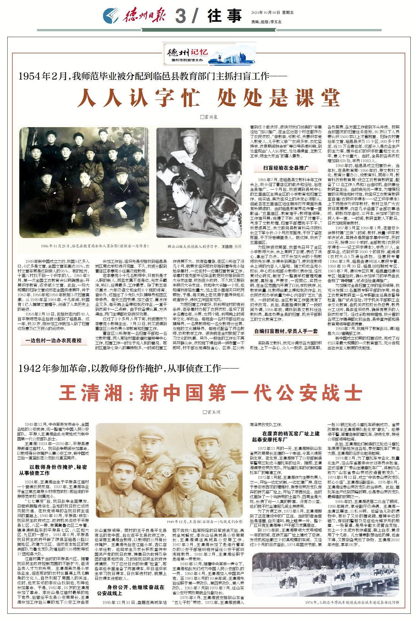 1949年12月,中央军委发布命令,全国各地的公安武装,统一整编为中国人民公安部队。平原人王清湘由此光荣地成为新中国第一代公安部队战士。