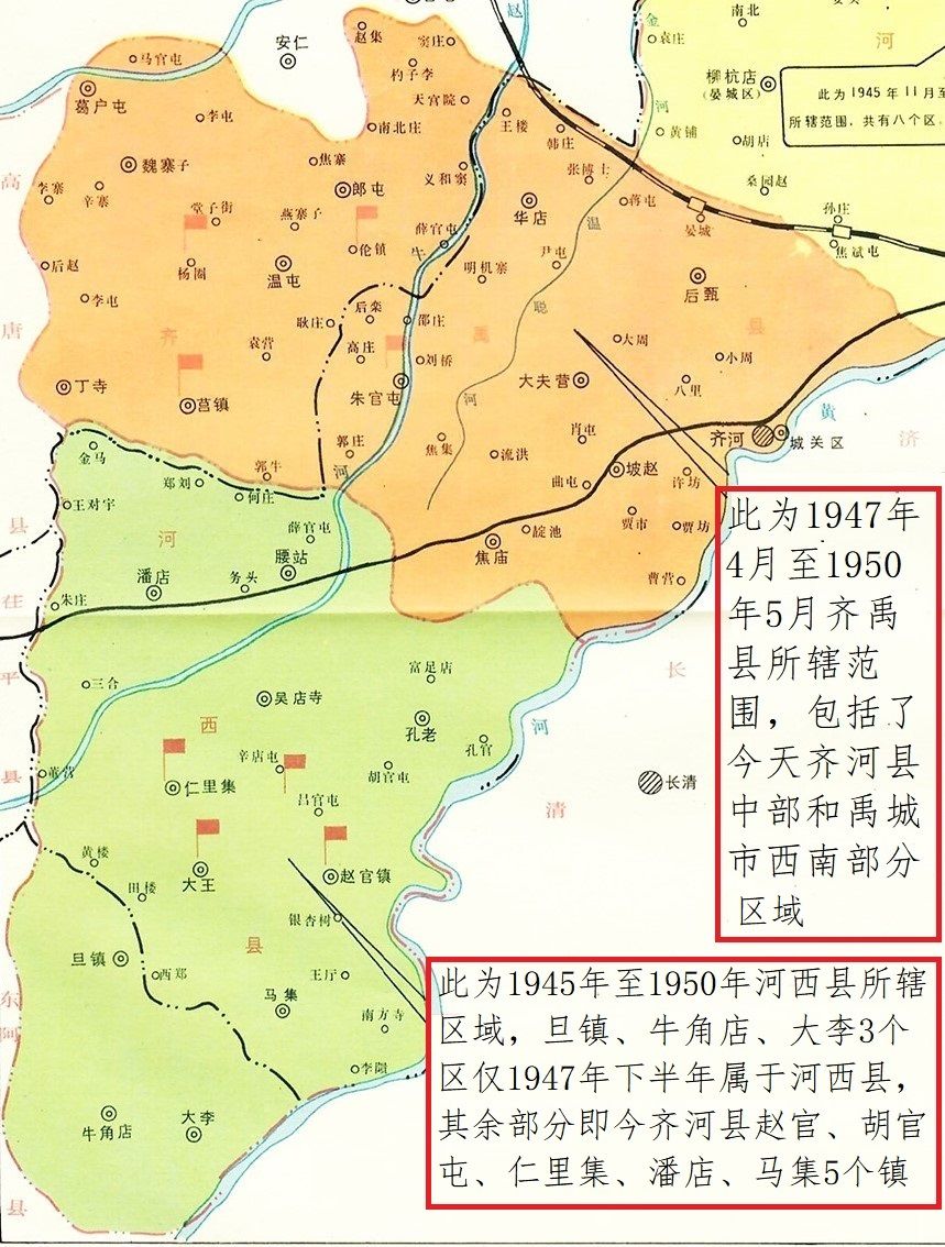 1956年5月,长清县黄河以西区域划入齐河县。自此,原河西县辖区成为齐河县的一部分。