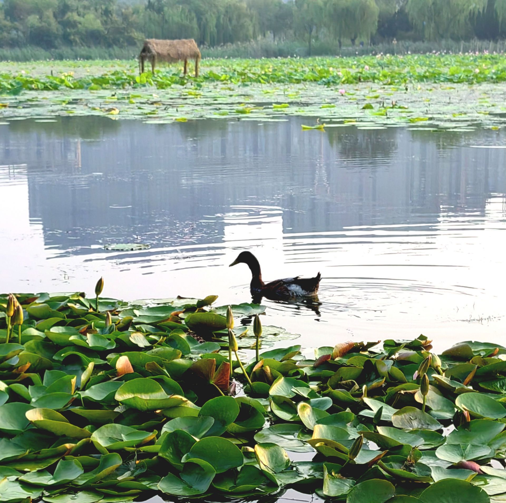 蝉噪柳荫,蛙鸣苇底,鱼戏萍间。荷与睡莲同栖水泽而性殊:荷茎挺举如君子立世,高水面丈许,盛夏朝开暮合,存昼夜之序,故周敦颐赞其“出淤泥而不染”,杨万里咏“接天莲叶无穷碧”;睡莲根固淤泥,叶浮于水,似隐士枕流,春秋可放,而昼醒夜眠,暗合阴阳之道,诗人喻为“水面睡仙袖轻舞”。今观两者,忽悟:荷花之不可亵玩,非拒人千里,乃示尊严之界;睡莲之昼醒夜眠,非怯于风雨,实藏韬光之机。水泽双姝,原是天地写于人间两阙诗:一阙昂然若入世君子,一阙悠然似出世高人,共谱“草木有本心”之永恒章句。