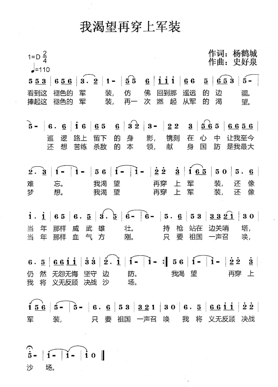 曲|史好泉:我渴望再穿上军装
