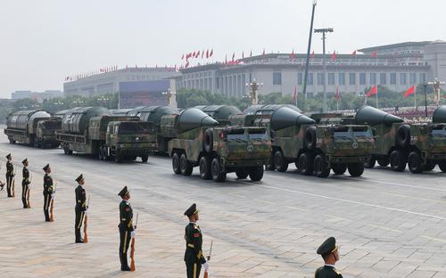 万里晴空,旌旗展、三军列阵。惊寰宇、雄师威凛,战鹰翔跃。八秩烽烟凝史鉴,千秋肝胆铭金阙。望长空、利剑贯苍穹,风云裂。
