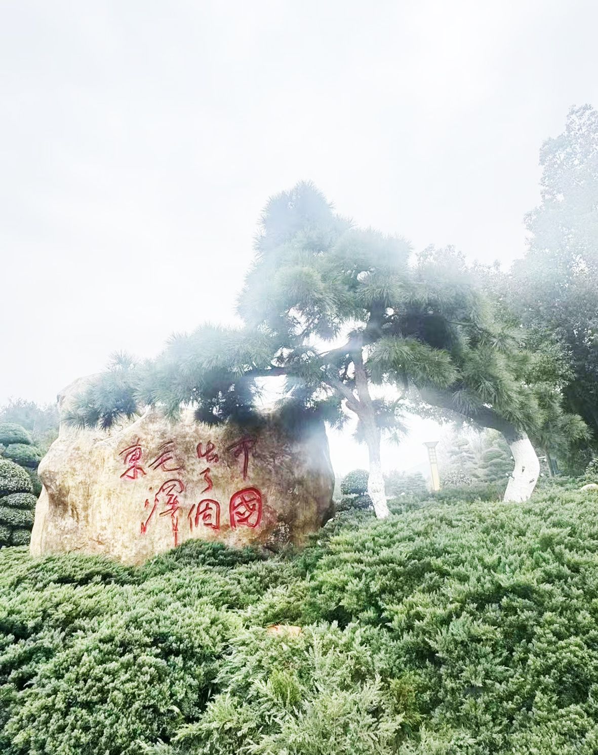 庭樟垂荫,苔阶渗碧。漫低回、天地沧桑。来者无声,相立相望。在春风里,秋山外,稻云旁。