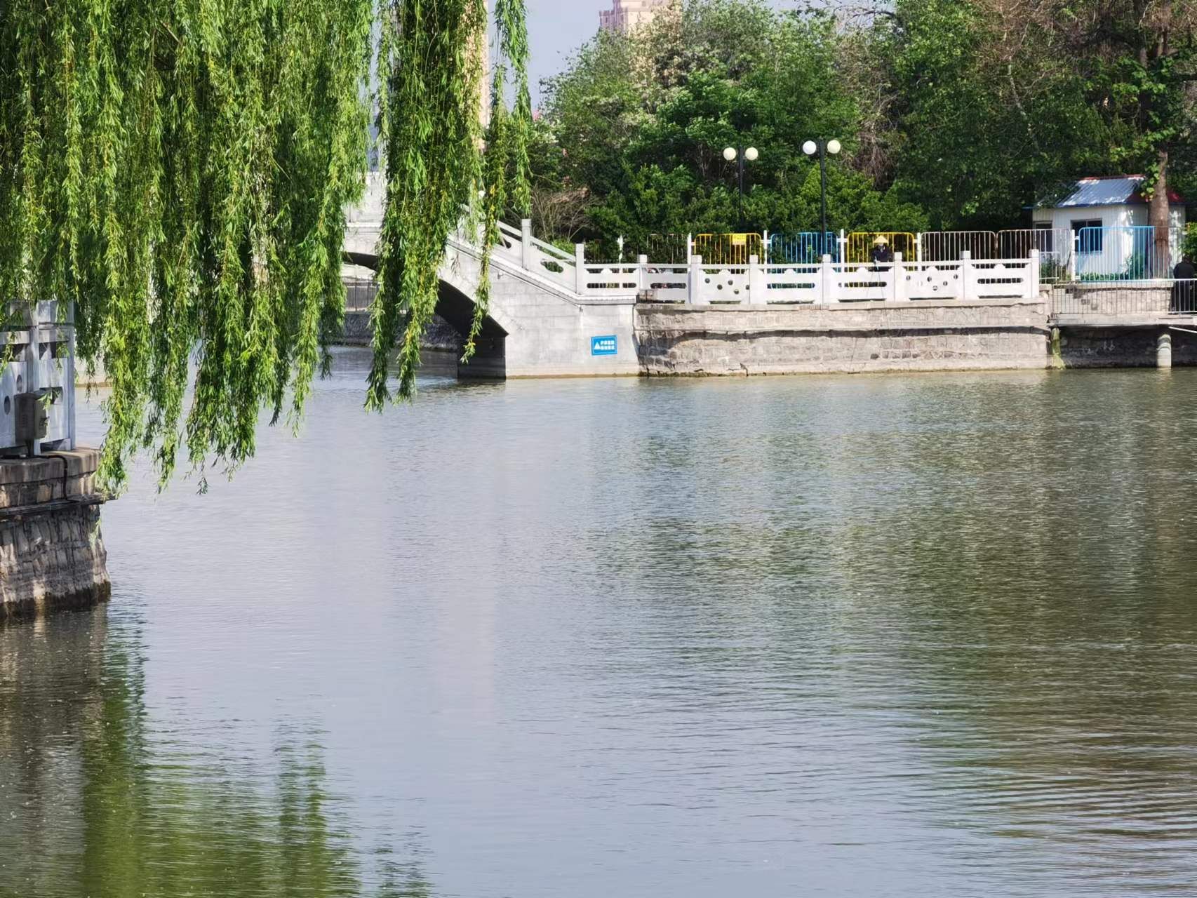 行走在明月湖边,挺拔的白杨撑开圆圆的大伞,把她的绿色洒在路上;茂密的垂柳荡开葱绿的柳帘,把她的绿色洒在湖上。本就绿色的湖水又被杨柳枝照上一层绿色。一阵风吹来,水面上荡起深浅不同的涟漪。这些涟漪荡漾在湖面上,也荡漾在人们的心底……