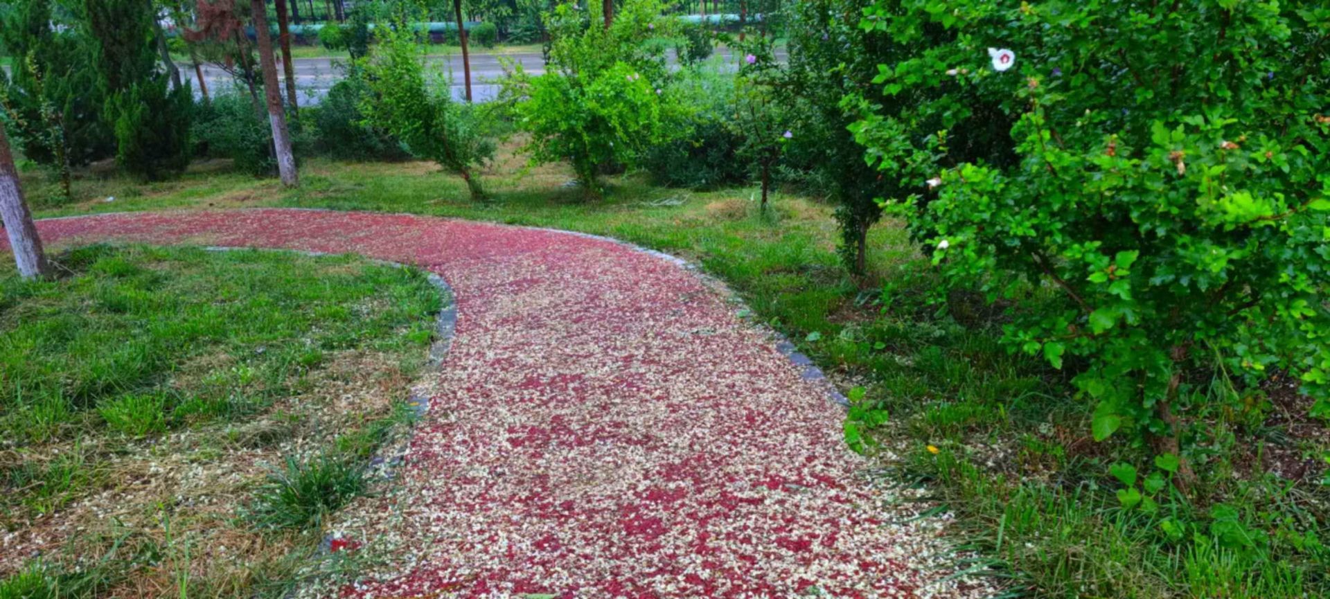 不知何时,淡黄色的国槐花瓣撒落了一地,分明是一幅香气四溢的立体画卷呈现在眼前。云在天上走,人在画中游,欣赏着亦梦亦幻的别样景致心旷神怡。一簇簇国槐花缀满枝头,弥漫着浓郁的香甜气息。此树开花簌簌黄,置身于林木中,静听着花瓣随着风儿扑簌簌落下的声音,好像一片片小精灵在轻吻着大地,正融入母亲的怀抱悄悄耳语。置身其中感受这一切,心绪自然会生出几分期望,久久不愿离开......