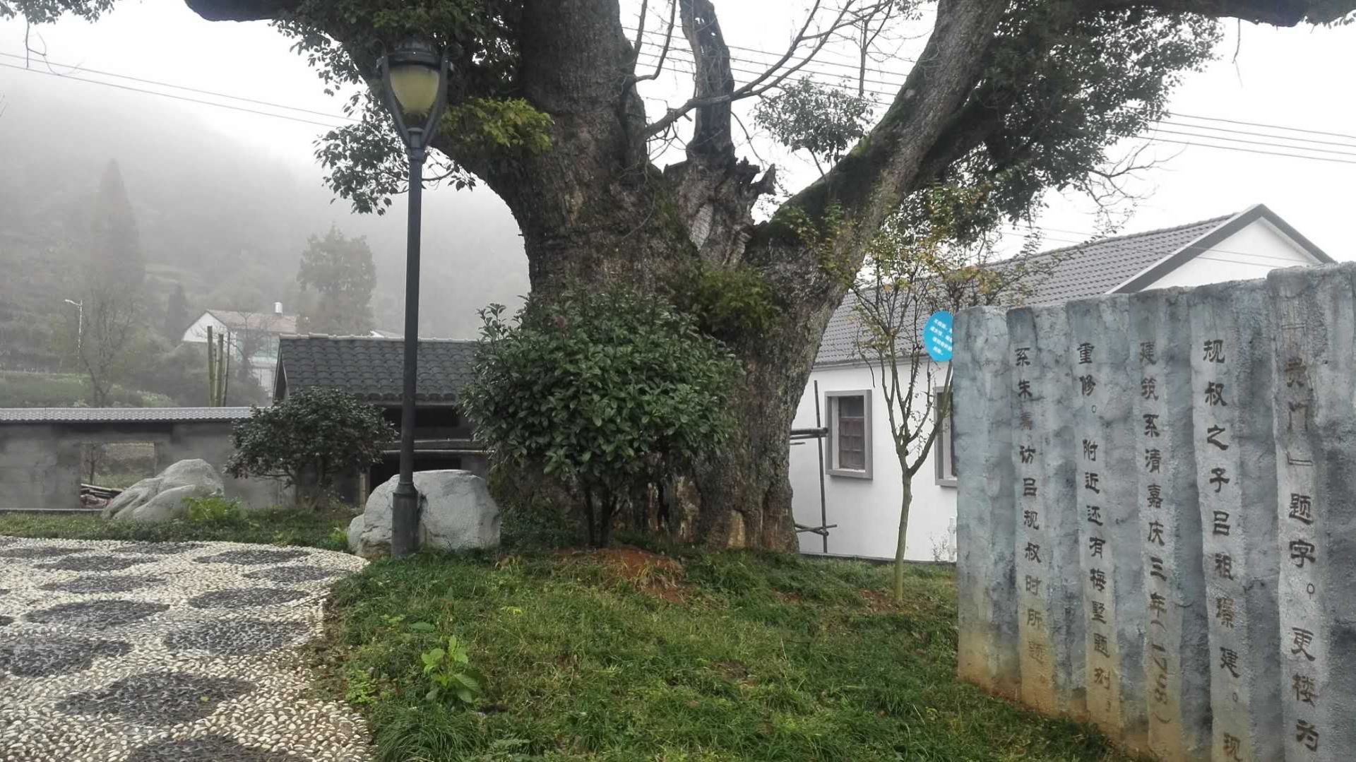 回家的第二天早晨,天下着蒙蒙细雨,我没有打伞,就急急地走出家门赶往后山的鹿门书院。鹿门书院也是父亲心心念念的地方,每次回老家,父亲总要带我们到这里瞻仰古人,寻访书香。走过几条油亮的青石板路,穿过村庄白墙黛瓦的古民居,首先映入眼帘的是书院前那棵香樟树,还有树下书写着“鹿门书院”的牌坊。香樟树的历史久远,据说已有千年,与书院同龄。香樟树几十米高,嶙峋的躯干依然硬朗地探向苍穹,郁郁葱葱,树身直径约有三米,已经有些中空,渗透着千年的沧桑。顺坡而上就到了鹿门书院,古韵悠悠的建筑与比邻而下的民居,白墙黛瓦,青石板路,古朴的建筑风格,一路走来恍惚回到宋代,竟不知今夕何夕了。