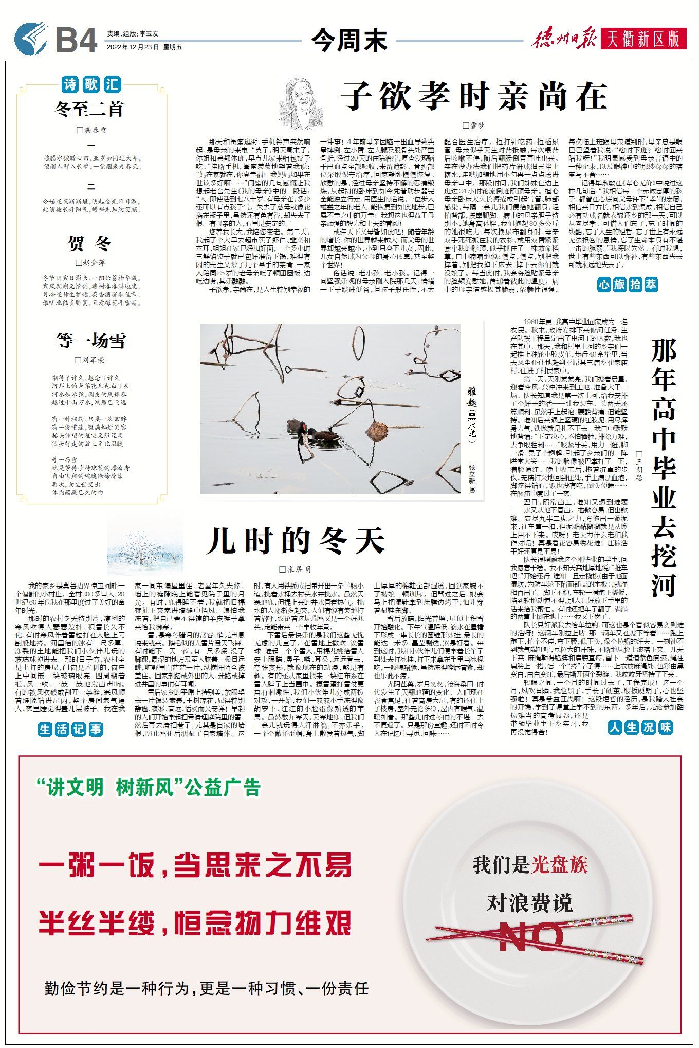 雪,是寒冬腊月的常客,悄无声息说来就来。鹅毛似的大雪片漫天飞舞,有时能下一天一夜,有一尺多深,没了脚踝,最深的地方及至人膝盖。极目远眺,旷野里白茫茫一片,纵横阡陌全被盖住。回家赶路或外出的人,迷路或掉进井里的事时有耳闻。