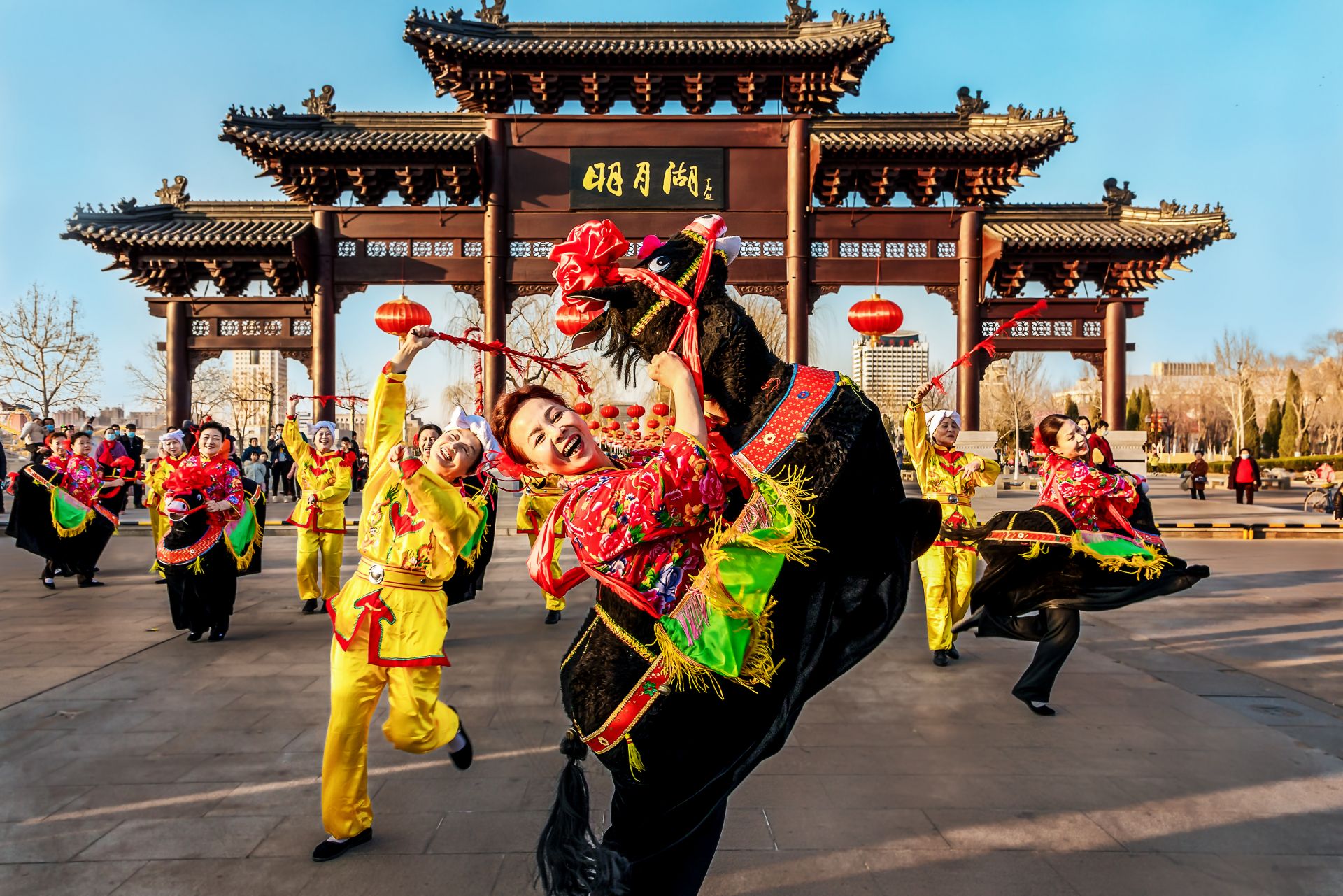 大年初一一早,先放爆竹,叫作“开门炮仗”。爆竹声后,碎红满地,灿若云锦,称为“满堂红”。这时满街瑞气,喜气洋洋,拜年也开始了,一般持续到二月初二“龙抬头”。