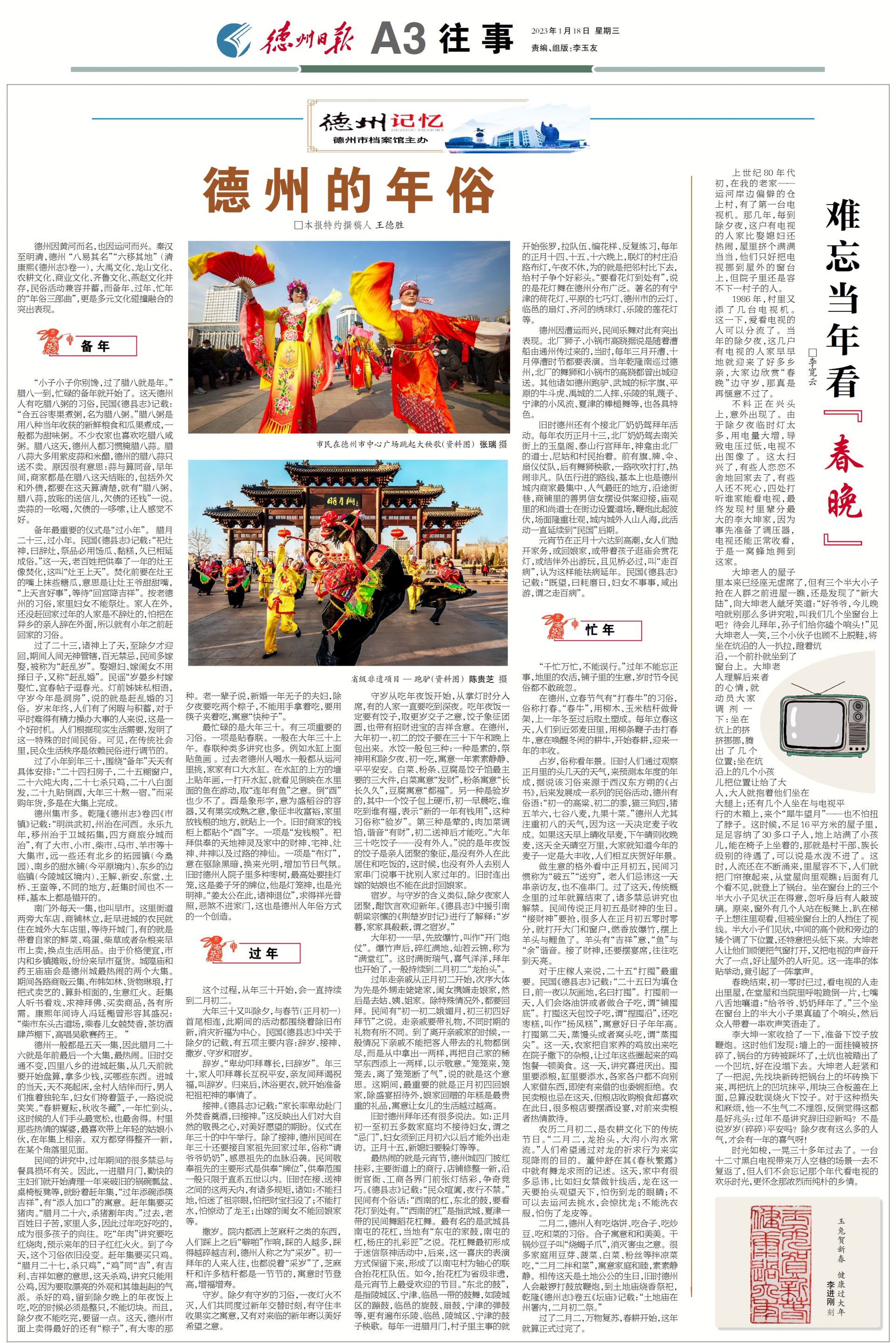 德州因黄河而名,也因运河而兴。秦汉至明清,德州 “八易其名”“六移其地” (清康熙《德州志》卷一), 大禹文化、龙山文化、农耕文化、商业文化、齐鲁文化、燕赵文化并存,民俗活动兼容并蓄,而备年、过年、忙年的“年俗三部曲”,更是多元文化碰撞融合的突出表现。