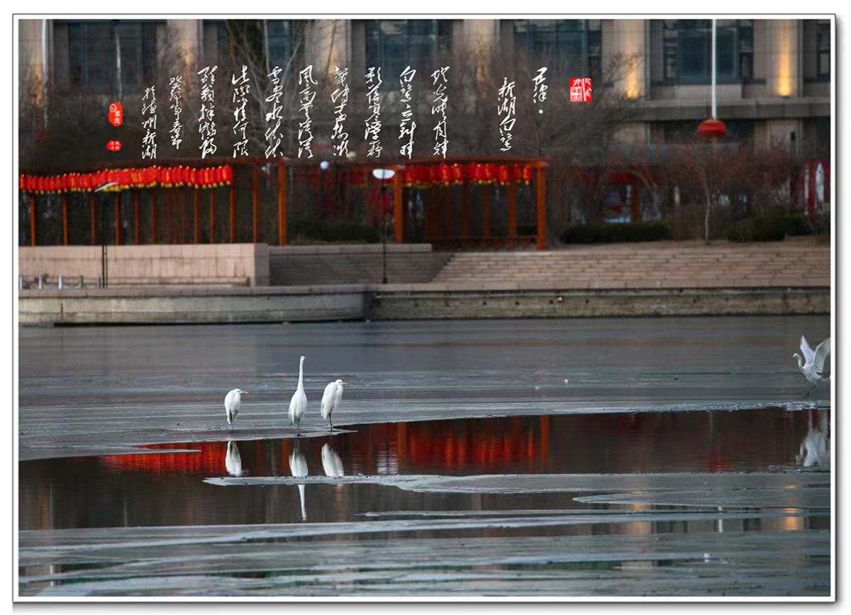 影 · 韵 | 张立新:五律 · 新湖白鹭 ©原创 2023-01-28 10:49 0 五律 · 新湖白鹭 □张立新 灯光映月辉,白鹭立斜晖。 影落寒潭静,声传远树微。 风高云漠漠,雪尽水依依。 此际情何限,醉翁拌鹤归。 德州日报新媒体出品 编辑 | 李玉友 审核 | 冯光华 终审 | 尹滨