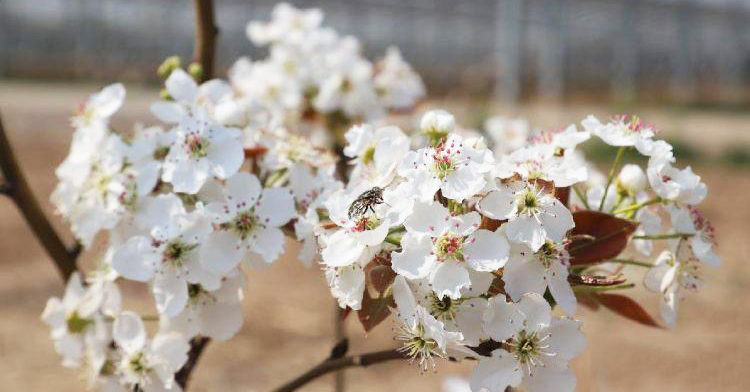 那雪一样的花朵,小巧玲珑,粉色的花蕊,微微一笑,既倾城又倾国!远一点你很难看清每一朵的模样,近一点儿才数清,她有五个花瓣!梨花就是这样普通得不能再普通,平常得不能再平常。伫立在梨花间,欣赏着那绮丽的美,蓦然让我想到疫情期间那救死扶伤的白衣天使。一张张带有勒痕的脸,一句句暖心窝的话,一行行滴落的泪,他们用生命为生命续命,用逆行在为中国助力奔跑!她们就似这梨花般渺小,却在抱团的一刹那间,惊艳整个世界!那是动人心魄的白,那是耀眼的白,那是打开生命通道的白!白的纯洁无瑕,白的大爱无疆!