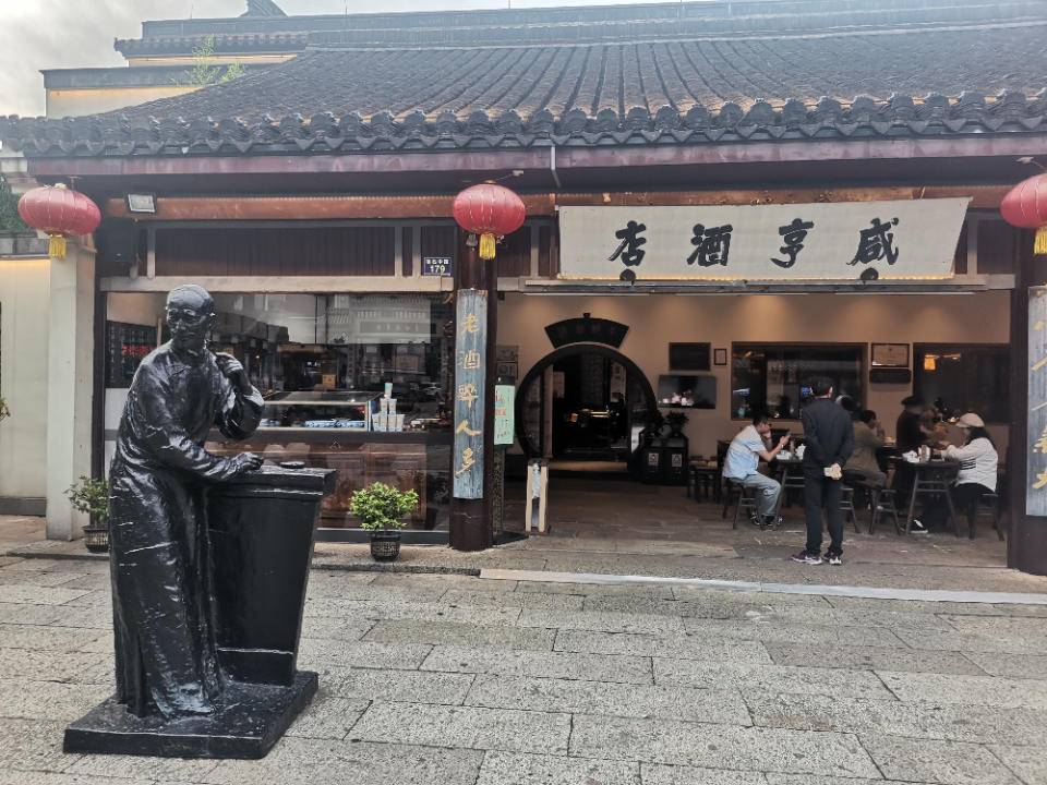 今年5月23日,因公前往绍兴考察文史工作,住进著名的咸亨酒店。酒店前有孔乙己的塑像。晚饭时,我们吃到了茴香豆。饭后参观了鲁迅故居、鲁迅纪念馆和三味书屋。在灯光昏暗的后园,我们找到了蜡梅树,找到了一棵枣树,却没有发现另一棵枣树。在三味书屋,我还买了一袋茴香豆和一把写有“读书须眼到、口到、心到”的戒尺。