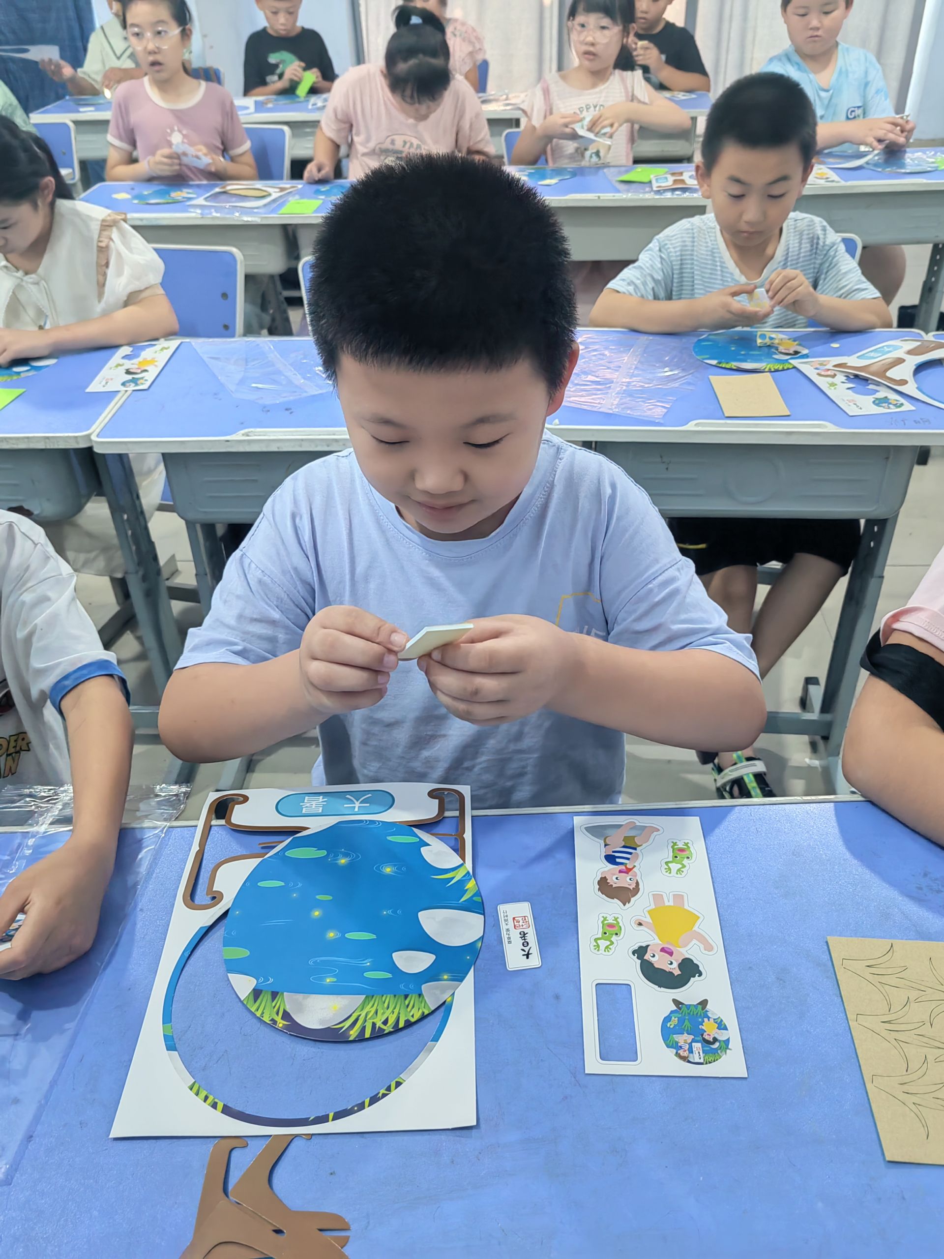 “大暑和小暑相比,会更加炎热,它是一年中阳光最猛烈、天气最炎热的节气。”互动结束后,在工作人员的指导下,他们开始兴高采烈地制作大暑节气纸盘,看着一个个精美的节气盘,他们的脸上绽放着灿烂的笑容。