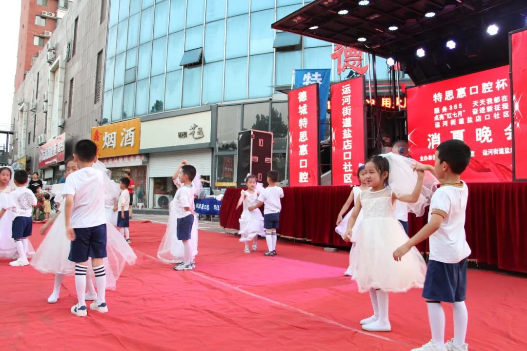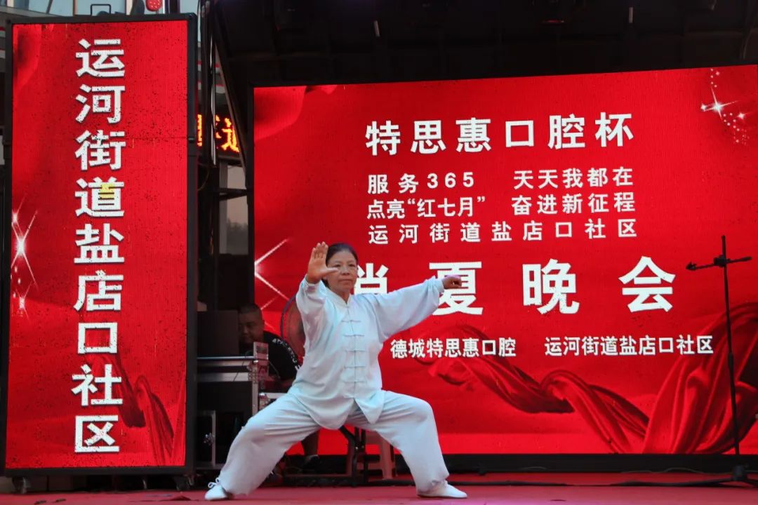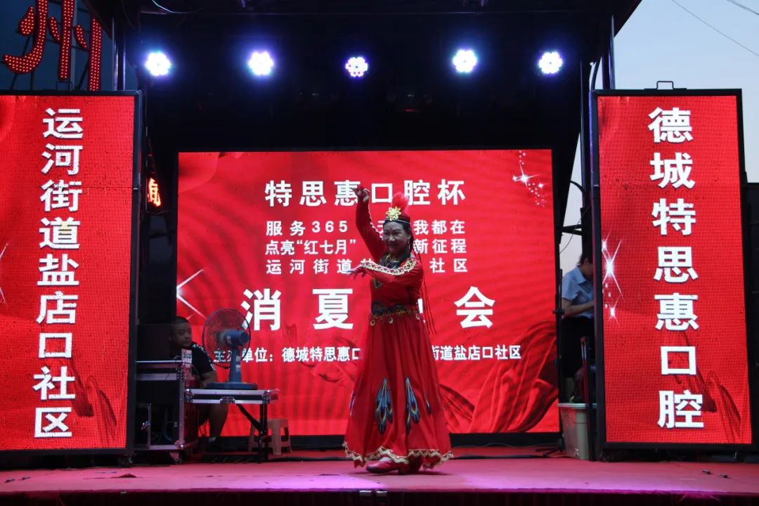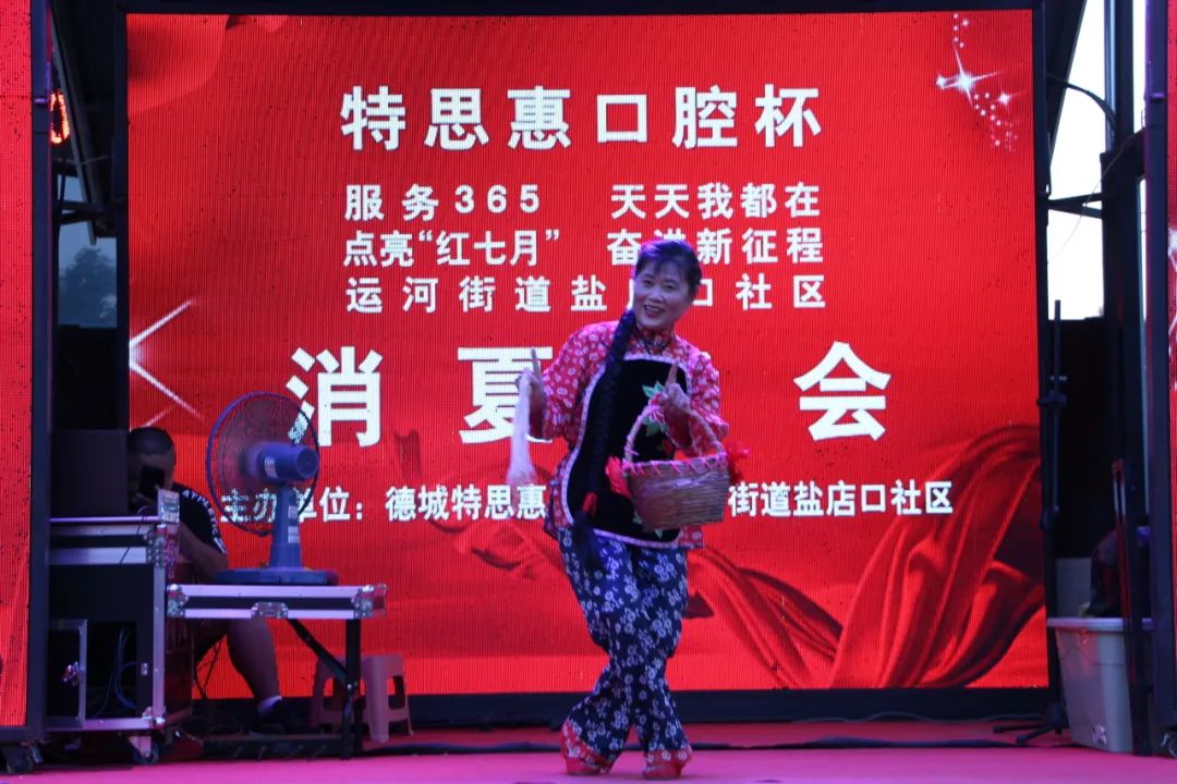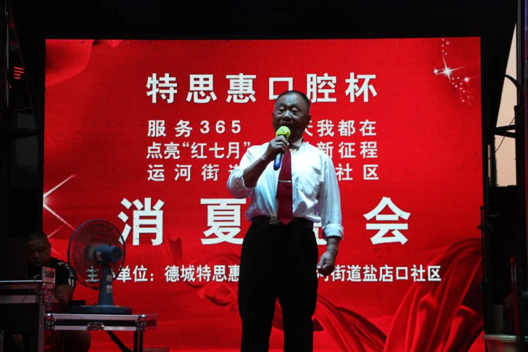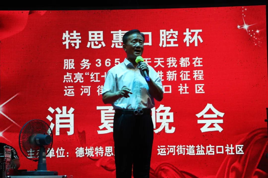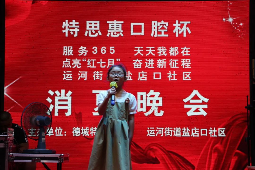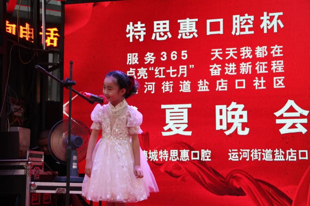 为不断深化党的二十大精神,增进邻里情谊,活跃社区文化氛围,7月17日晚上,运河街道盐店口社区联合德城特思惠口腔在德州古玩城B座举办“点亮‘红七月’ 奋进新征程”消夏晚会,社区党员、居民、志愿者欢聚一堂,为祖国的繁荣歌唱。