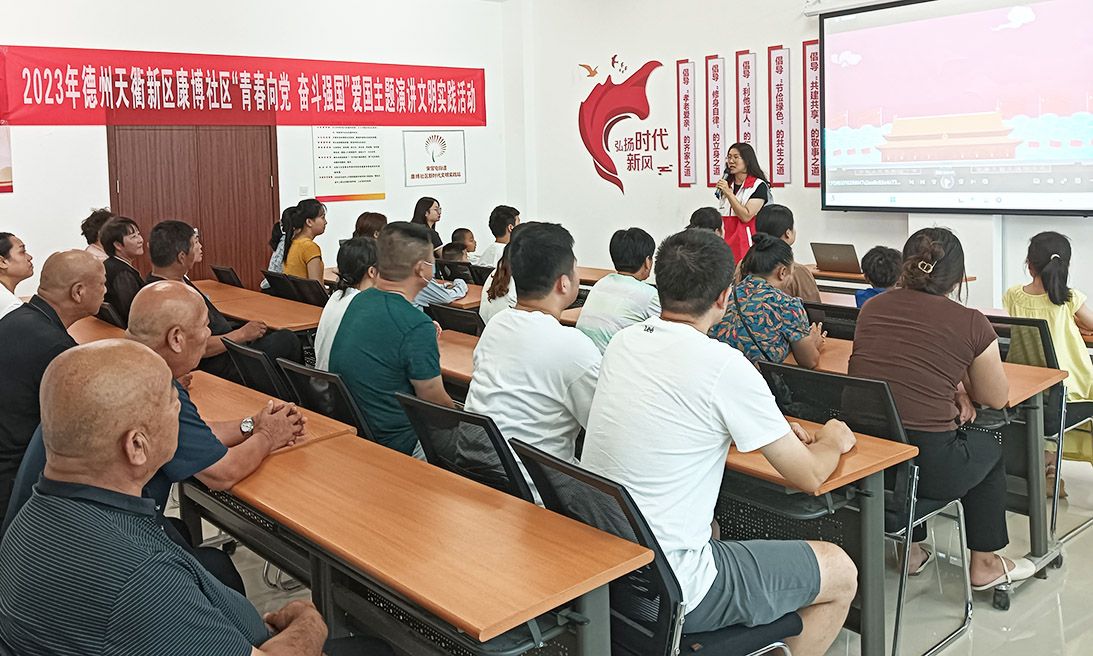 8月4日,天衢新区宋官屯街道康博社区开展“青春向党 奋斗强国”宣讲活动,30余名居民参加。