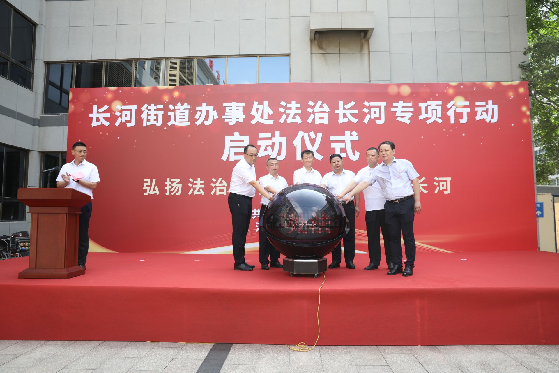 仪式上,长河街道办事处相关负责人介绍了“法治长河”行动相关情况,杨庄社区、簸箕刘社区、星凯社区等民主法治示范村代表依次做典型发言。随后,与会领导共同为长河街道办事处优秀人民调解员颁发证书、宣布“法治长河”专项行动启动。