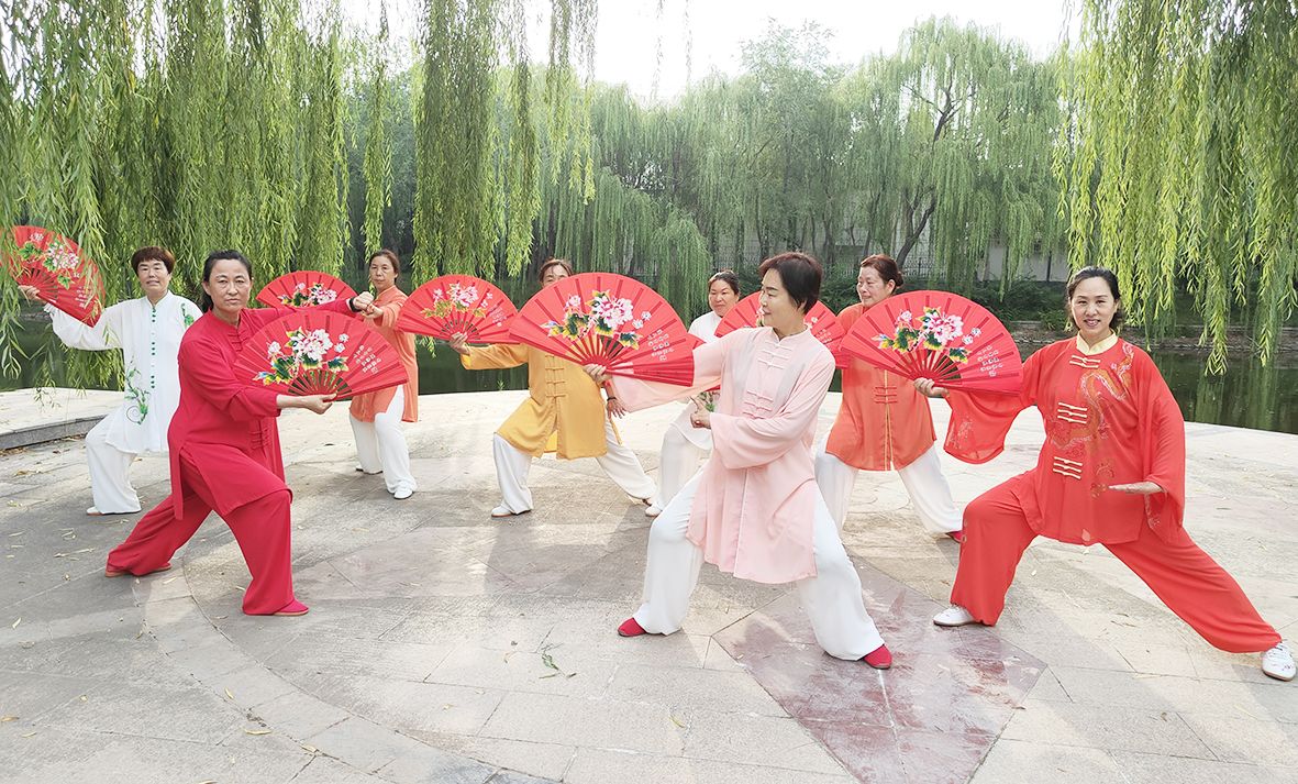 8月14日,天衢新区宋官屯街道常兴社区开展太极功夫扇展演活动,丰富辖区居民文体生活,增强健身意识和健康理念,营造全民健身的浓厚氛围。