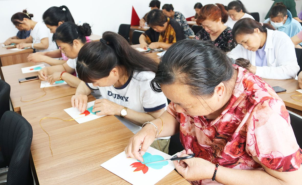 “金丝彩贴是省级非物质文化遗产项目,集合了民间布贴画、工笔国画等多种艺术表现形式……”8月16日,天衢新区宋官屯街道在宋官屯社区开展非遗工坊职业技能特色培训班,辖区50余位居民参加。