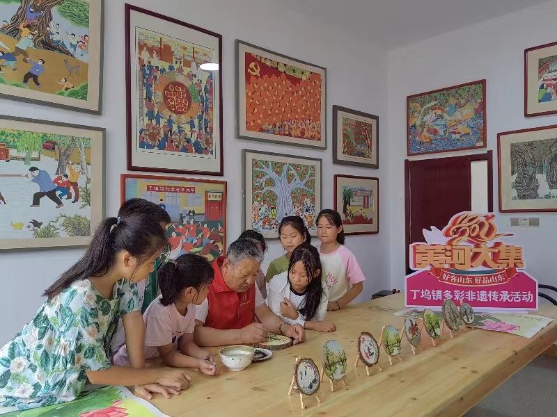 “暑期带着孩子过来,不仅近距离感受到非遗文化,还交到很多有共同爱好的朋友,开展这样的活动太好了。”中兴村小朋友徐梓萌的妈妈说。除了枣乡木板画,丁坞镇“黄河大集”非遗互动体验中心还涵盖枣乡农民画、剪纸、泥塑、葫芦烙画等近十个非遗互动体验空间,现场前来体验购买的群众络绎不绝。