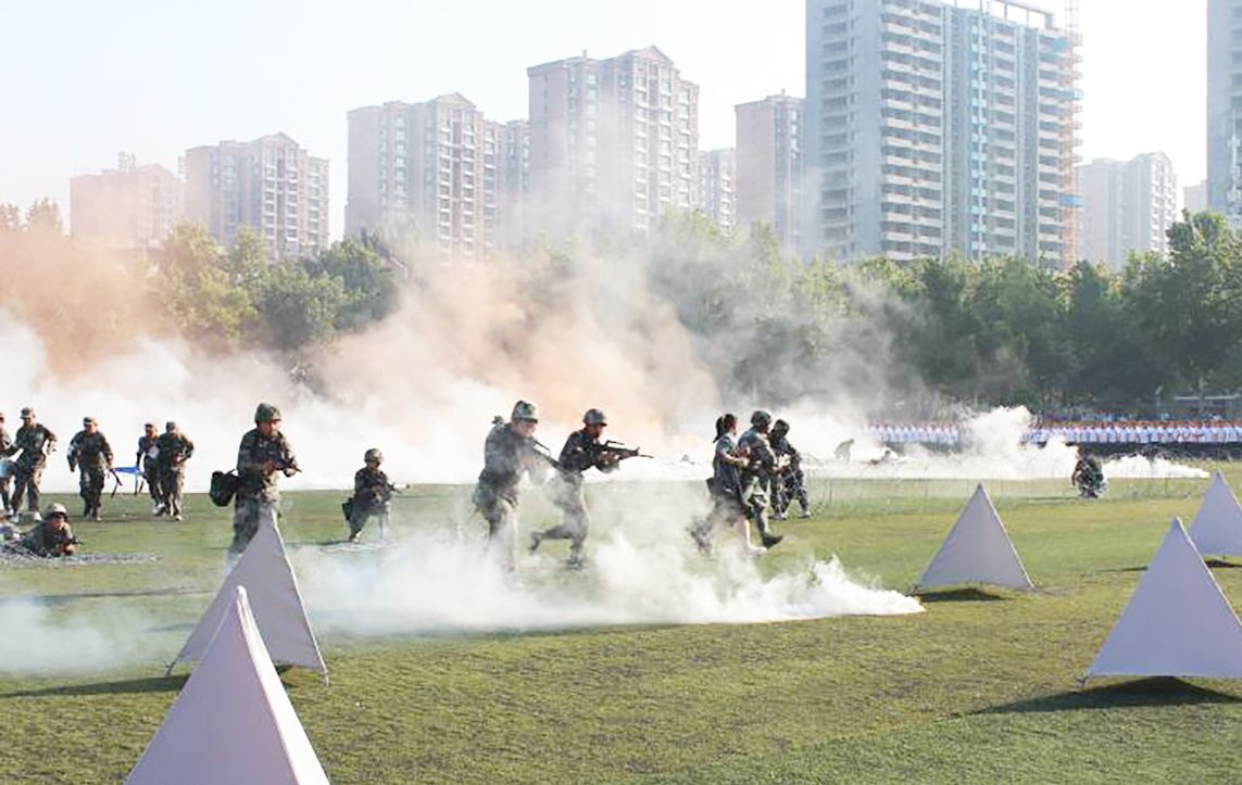 此次汇报展示分为分列式表演和综合演练两部分。在分列式表演中,新生们步履铿锵,目光坚毅,口号嘹亮有力,展示了良好的精神风貌。分列式表演结束后,进行了国防主题教育活动以及军事技能综合演练,新生们整齐的队伍、昂扬的士气,赢得了在场观众的阵阵掌声。