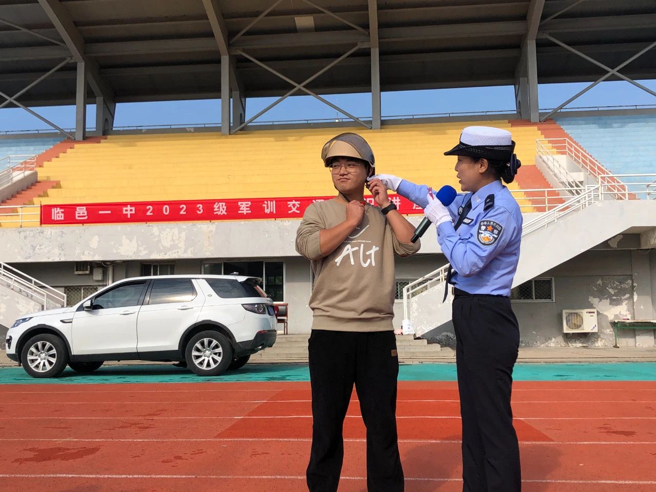 “过马路时别猛跑,举手示意忘不了,乘车要系安全带……”8月31日,一堂交通安全“开学第一课”在临邑县第一中学开课。