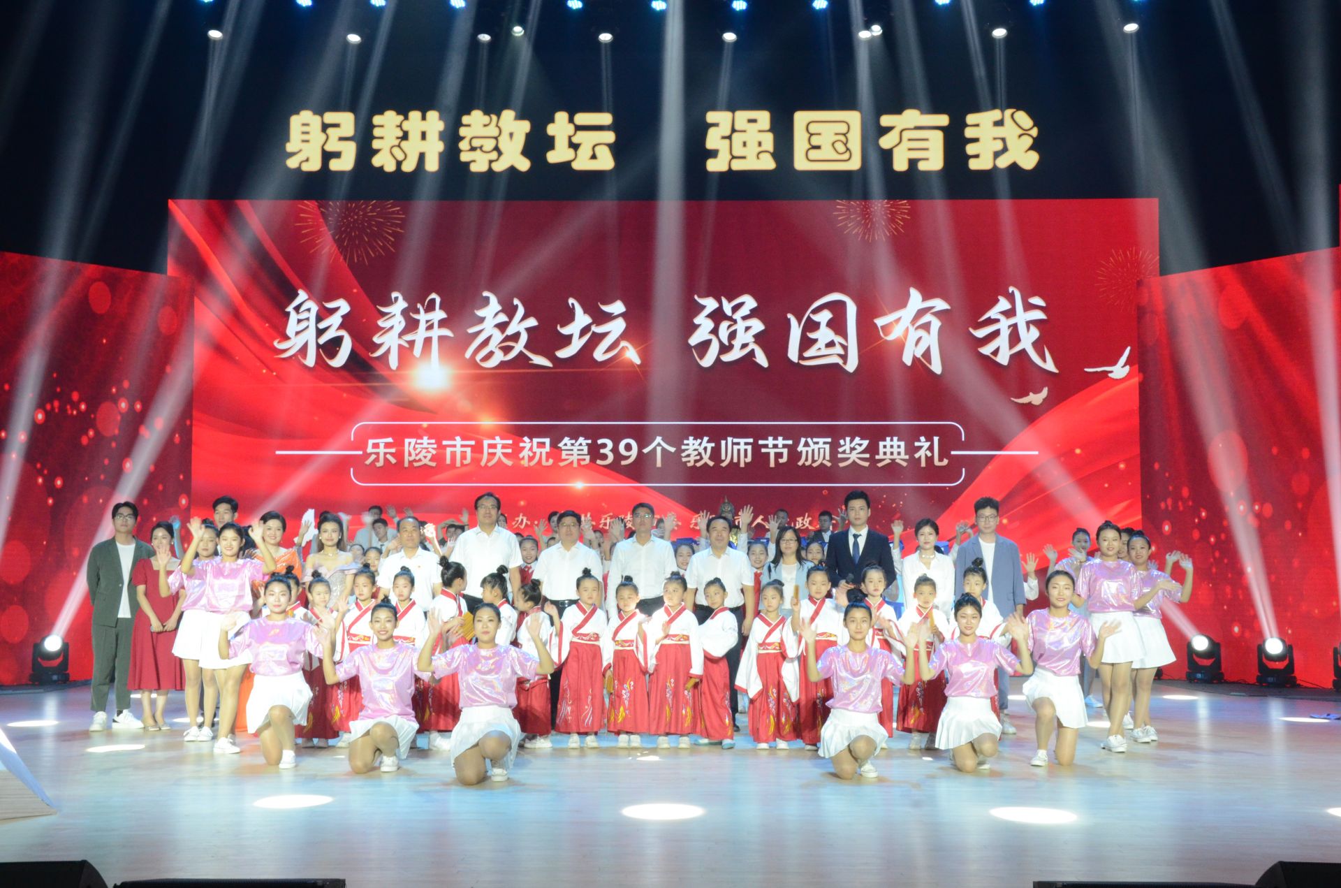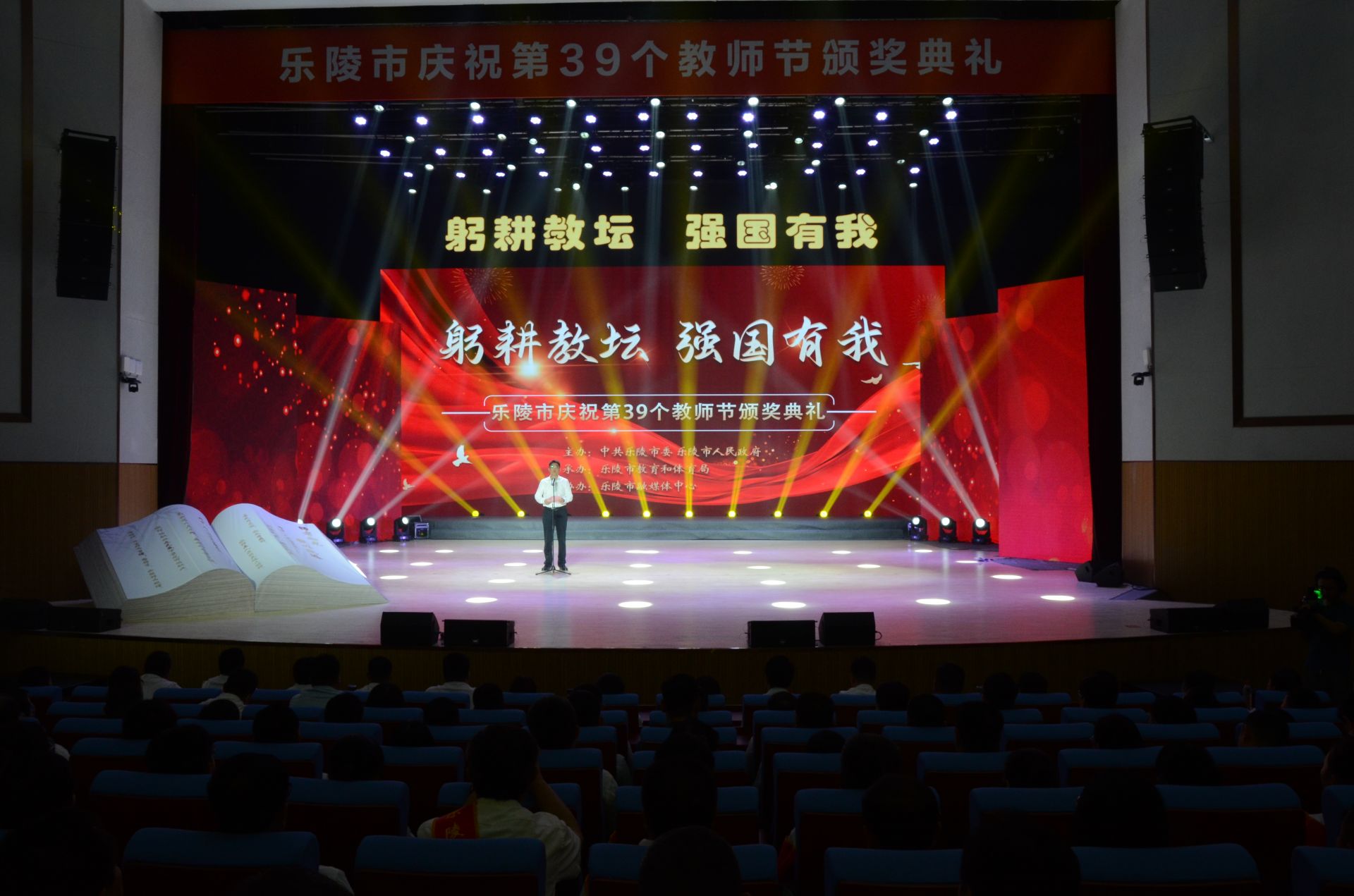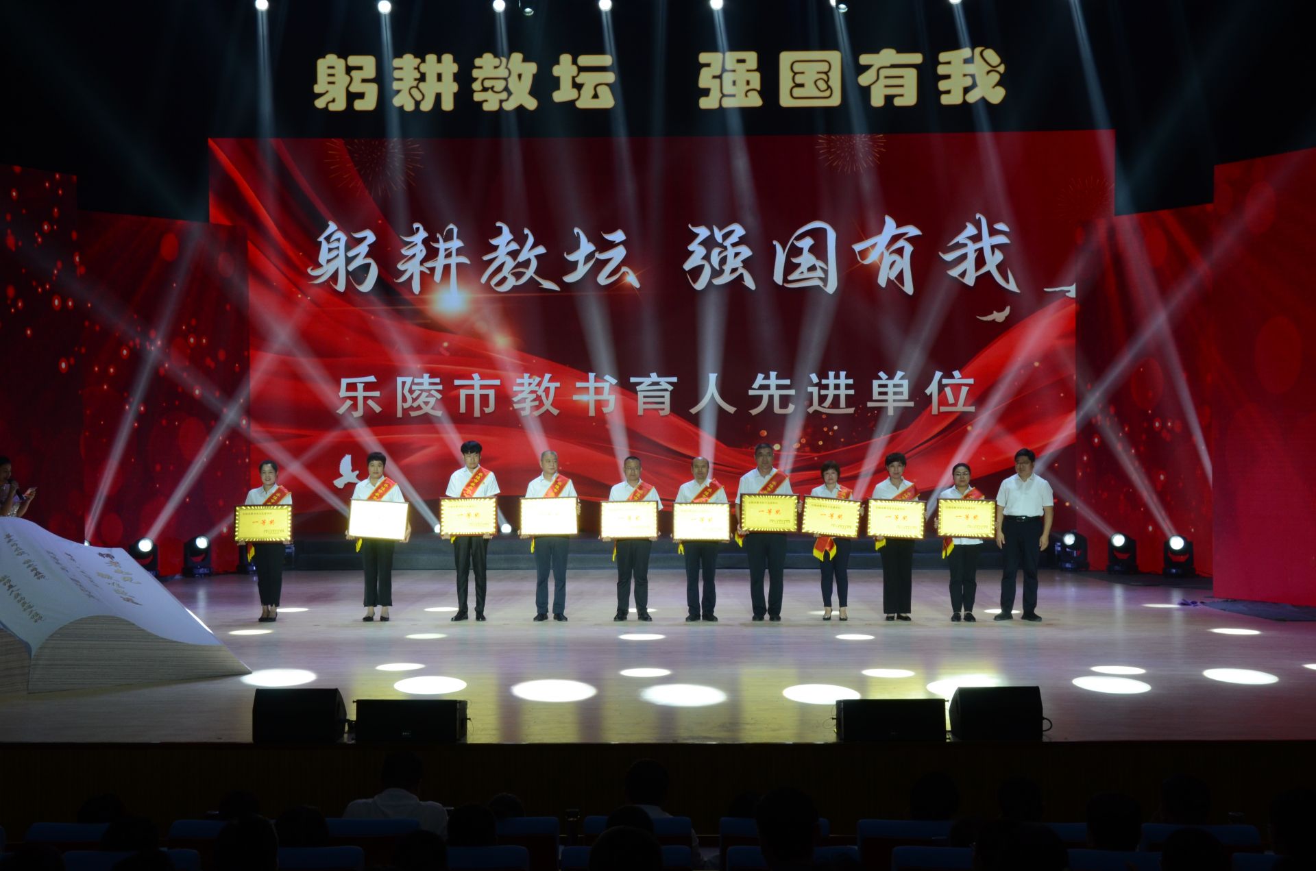 9月8日,乐陵市庆祝第39个教师节颁奖典礼举行,为教书育人先进单位、优秀教师、优秀教育工作者、优秀校长进行了颁奖,举行了精彩纷呈的文艺节目演出,学生代表向老师们敬献了鲜花,表达了浓浓的节日祝福。