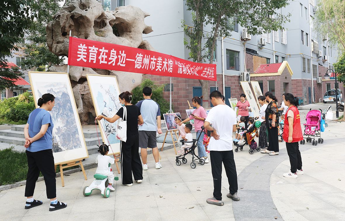 9月8日,德州市“流动美术馆”系列活动走进天衢新区宋官屯街道新城社区,十余幅高水平馆藏作品让居民们零距离感受艺术魅力。