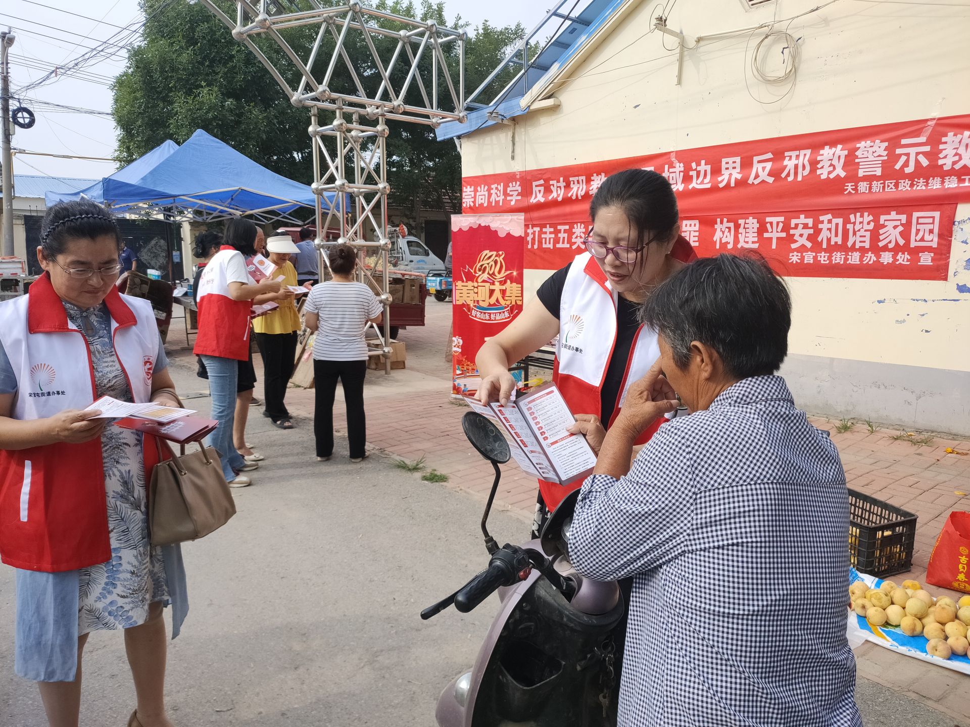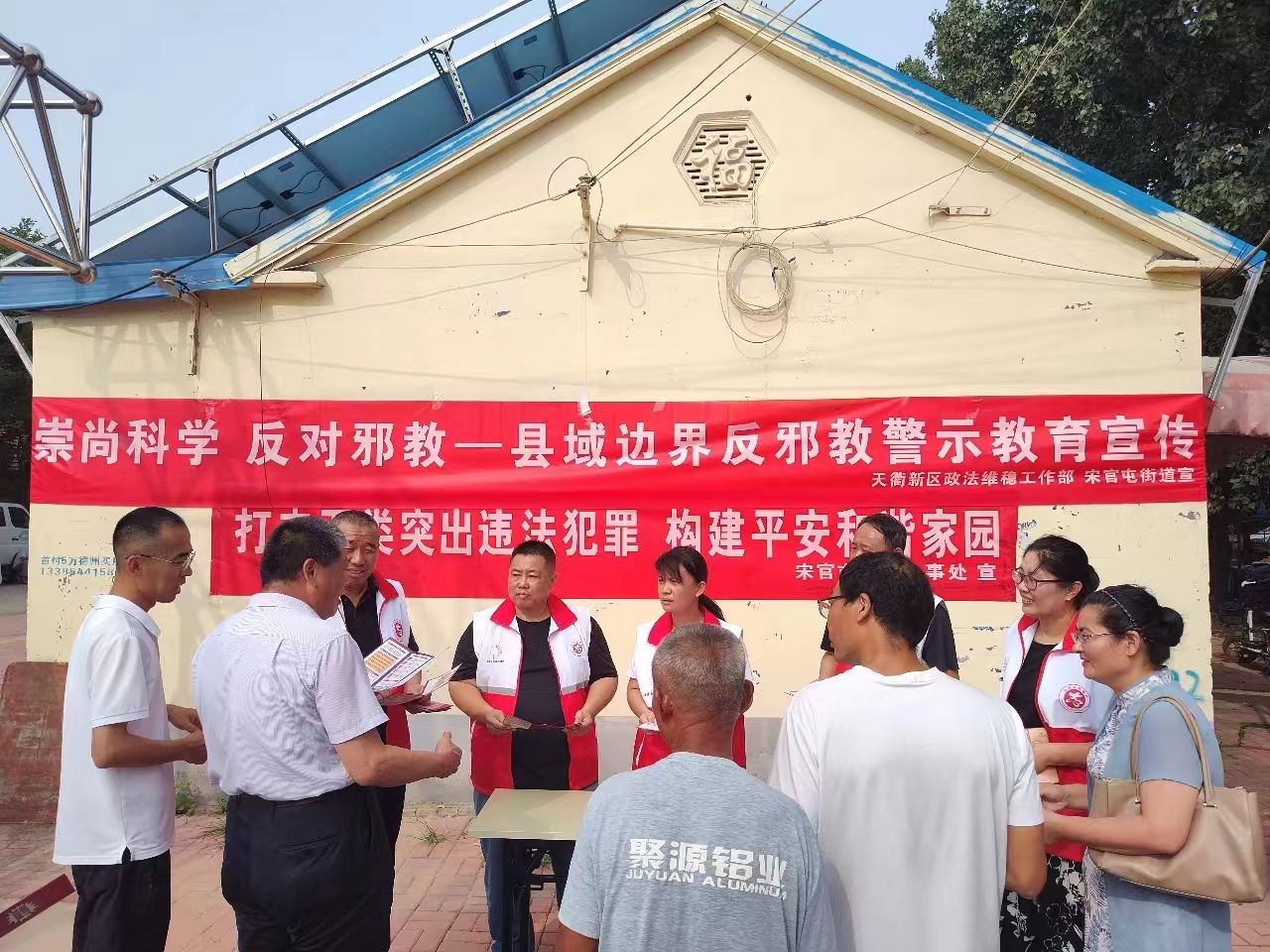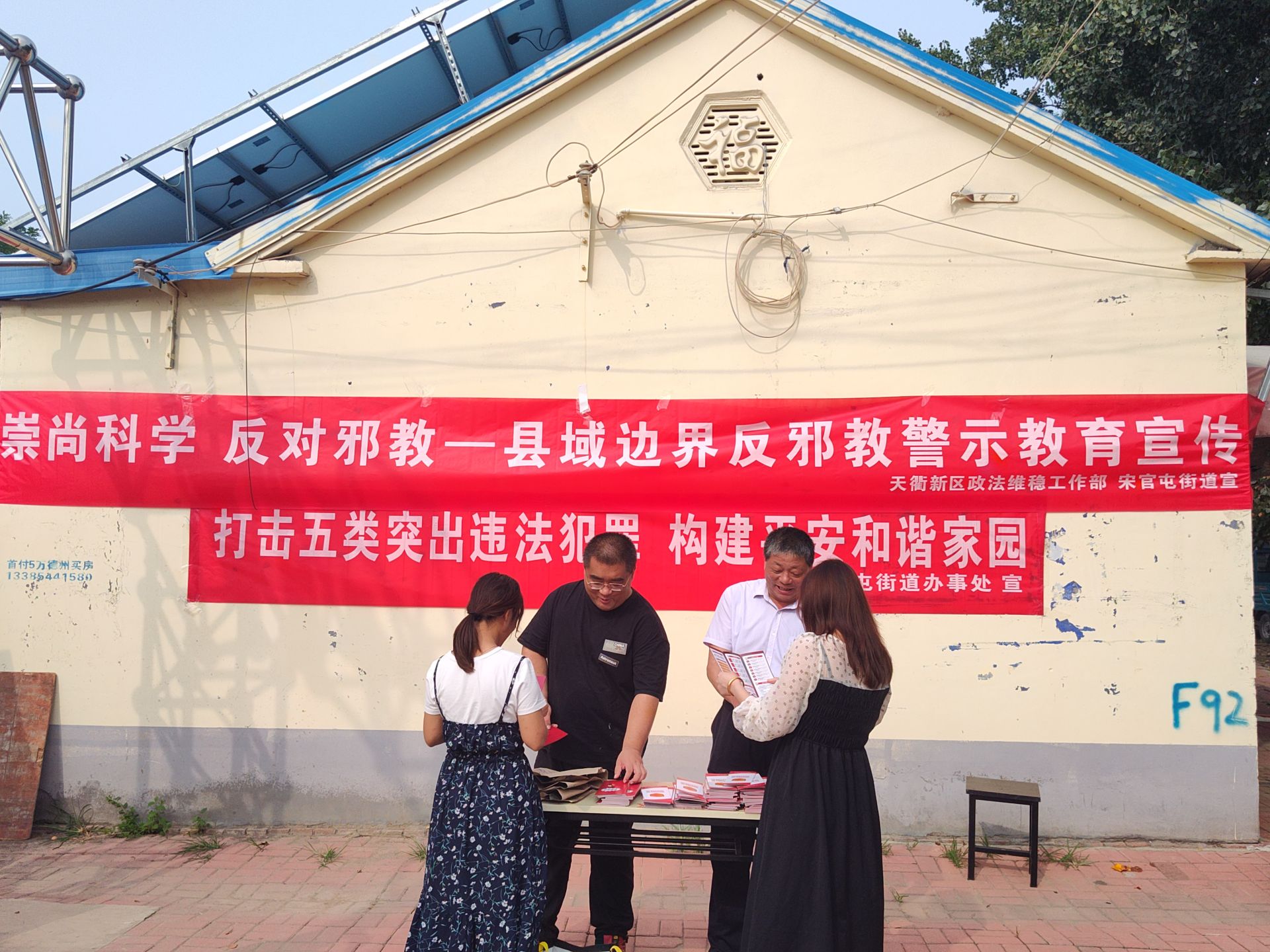 为进一步提高反邪教意识,弘扬科学精神,9月11日,德州天衢新区政法维稳工作部联合宋官屯街道在张官屯村开展“崇尚科学 反对邪教”县域边界反邪教警示专题宣传活动。