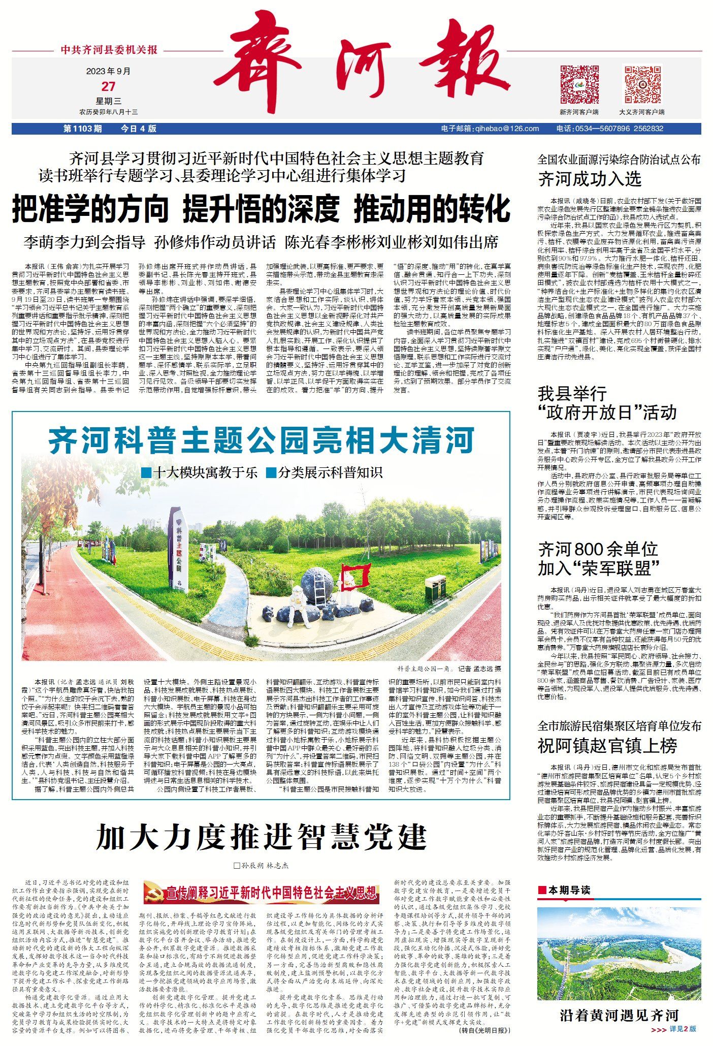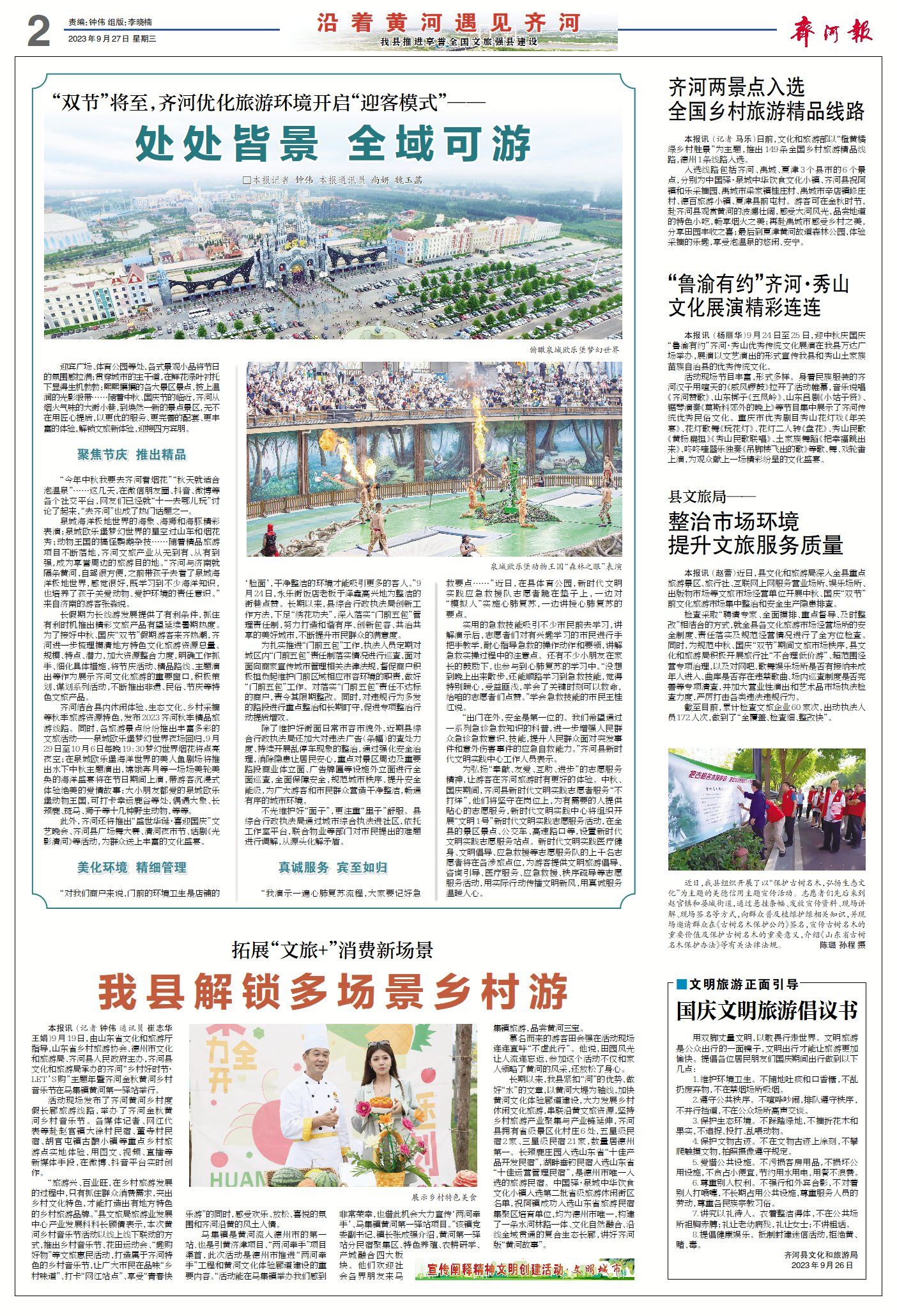 ▶“双节”将至,齐河优化旅游环境开启“迎客模式”——处处皆景 全域可游。(点击查看详情)