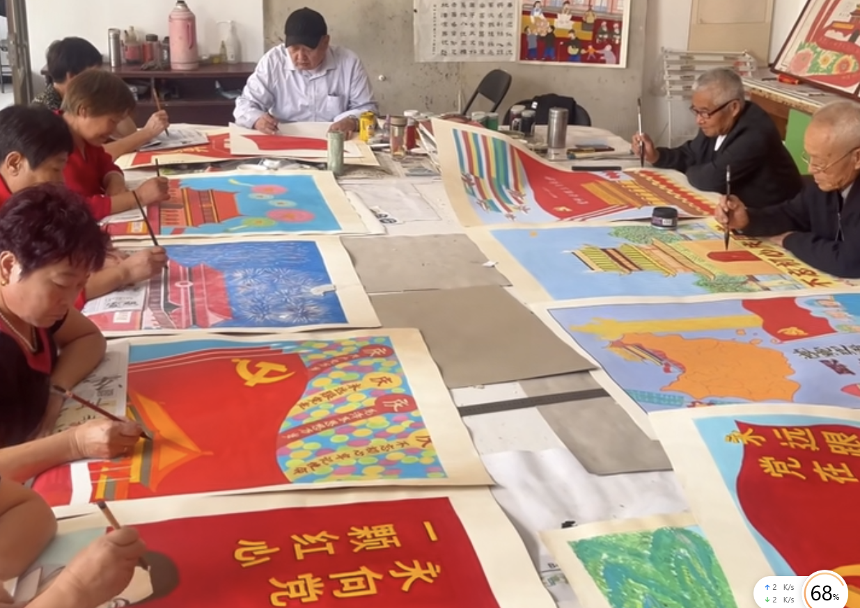 9月28日,在丁坞镇老年大学里,16位农民用刚刚创作完成的30余幅国庆主题农民画为祖国献上祝福。