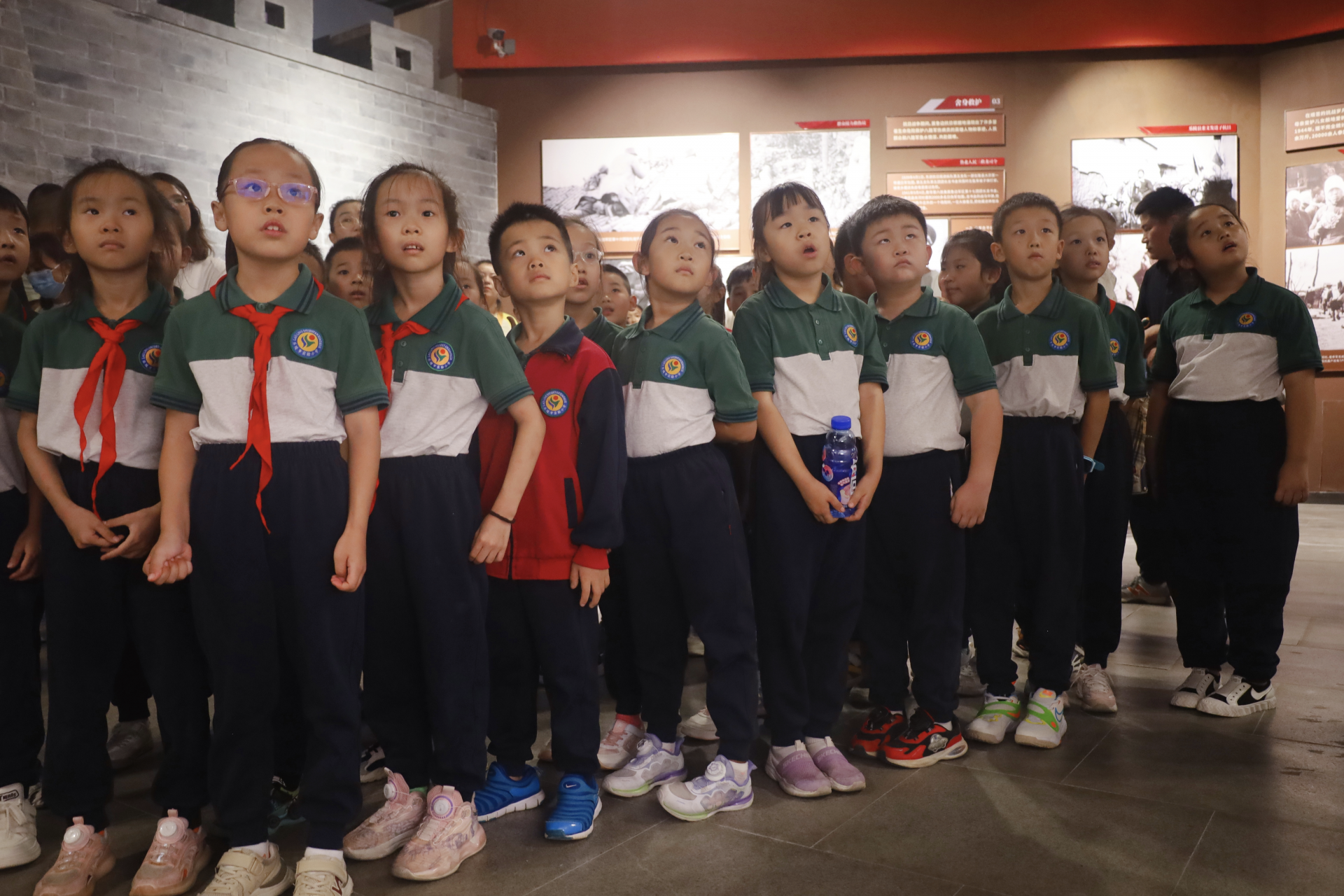 同学们列队整齐,认真聆听讲解员讲解,感受革命先烈的奋斗史,传承红色基因、弘扬优良传统。