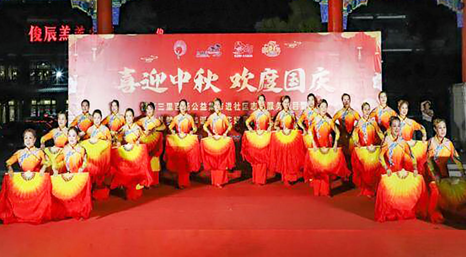 演出在热烈欢腾的舞蹈《我爱你中国》中正式拉开帷幕。男、女生独唱、萨克斯演奏、舞蹈、京剧等节目轮番上演,引得台下的居民纷纷驻足观看。