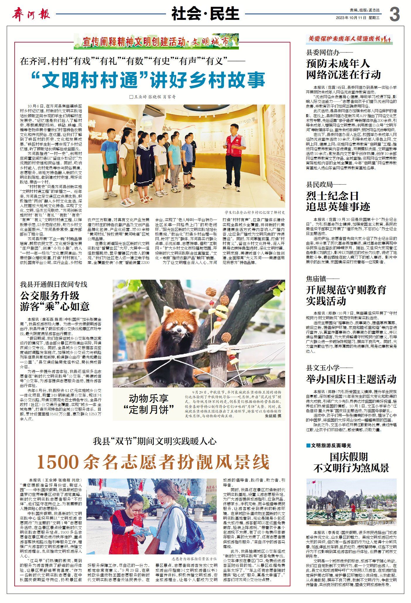 ▶齐河“双节”期间文明实践暖人心 | 1500余名志愿者扮靓风景线。(点击查看详情)
