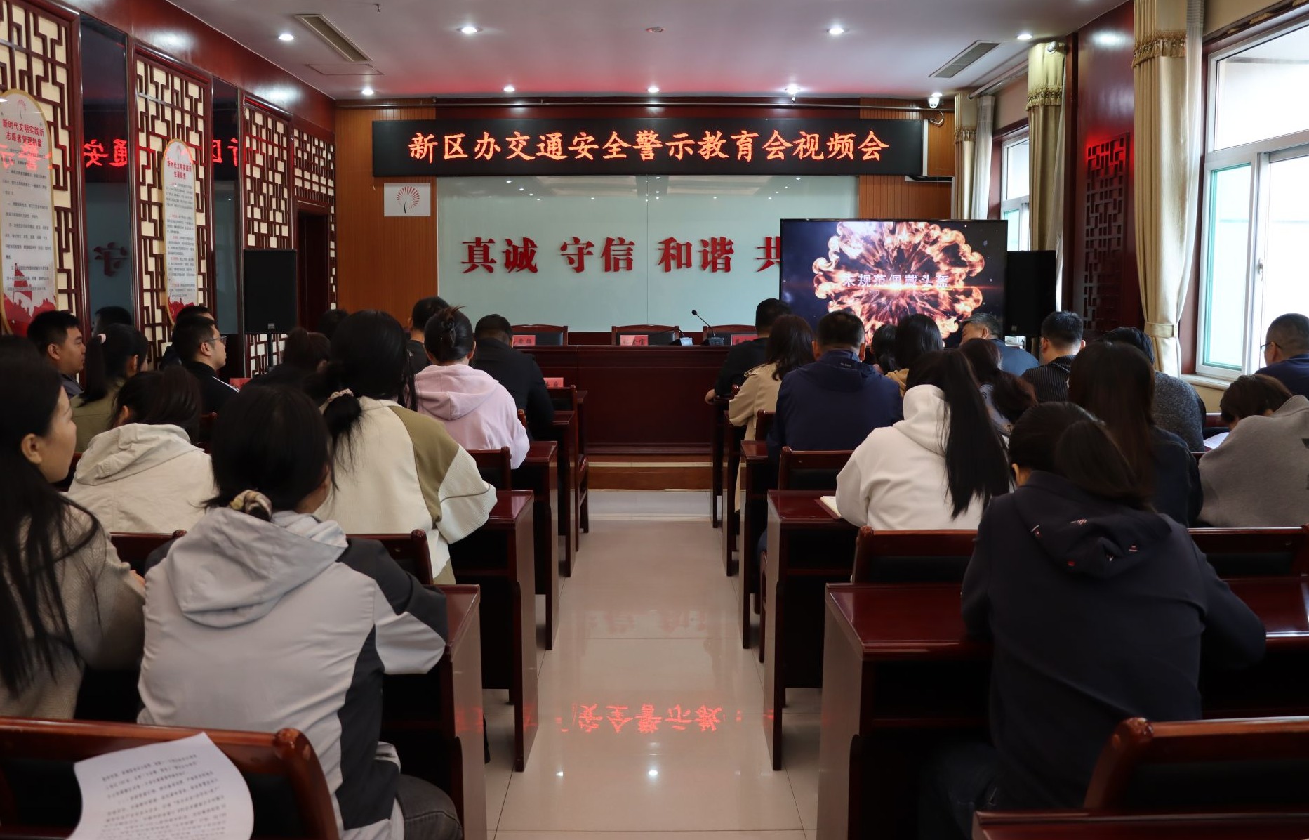 10月16日,新区办召开交通安全警示教育视频会,相关负责人主持,管区书记、全体工作人员参加。