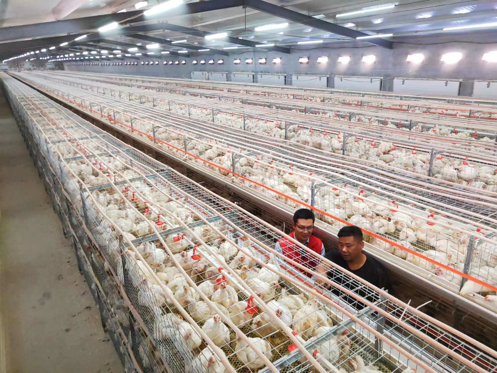 10月31日,在平原县王打卦镇王打卦村个体养殖户王宝的养鸡场,他指着整整齐齐的鸡笼对平原农商银行的工作人员说:“新建的两个鸡舍,每个设置6个鸡笼,长度100米,能养鸡4万多只。”