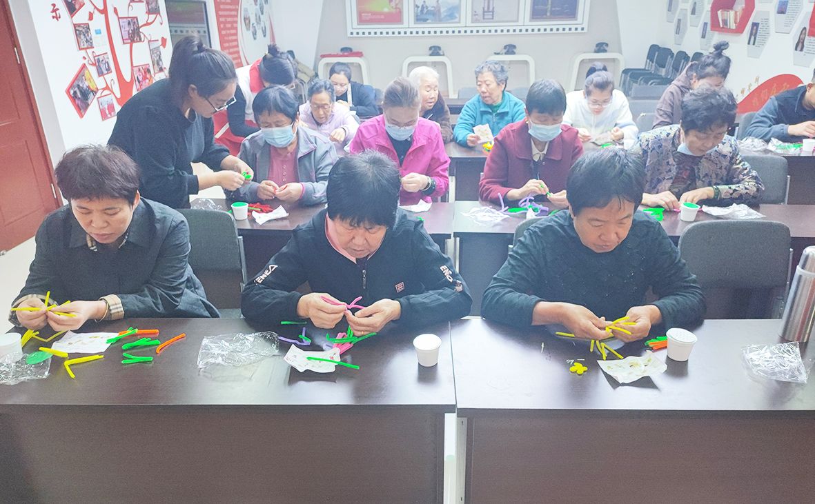 11月8日,天衢新区宋官屯街道十二里庄社区开展“花开满园 朝夕相伴”中老年手工花制作活动。
