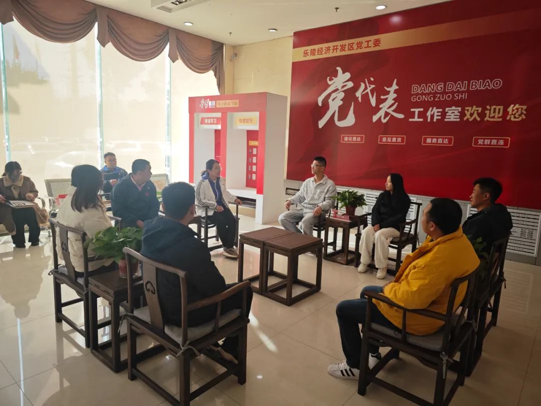 在乐陵经济开发区园区党群服务中心,大家通过讲解员的讲解,对党群服务中心各功能区有了详细了解,特别是园区组织架构、产业链架构、非公企业党建发挥作用及模范党员有了深入了解。参观完毕,各企业后备人才在党员议事厅开展座谈,交流各企业在产品研发、质检、后勤保障、市场分析等方面的业务,取长补短,互相学习。通过沟通交流解决后备人才在工作中遇到的难点痛点问题12个,聚力为后备人才创造良好的发展环境。