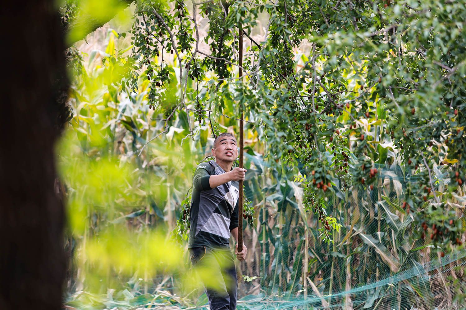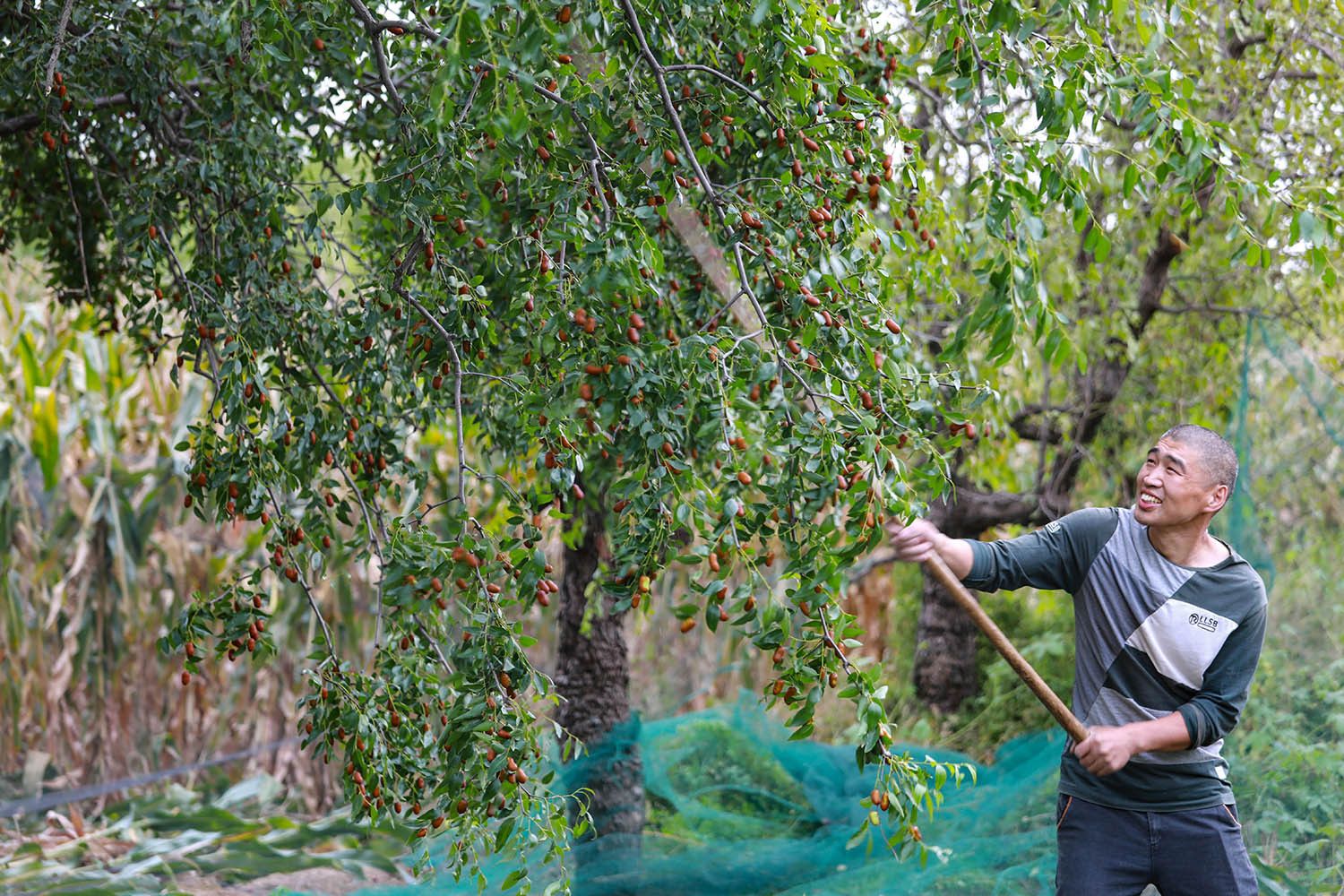 ▲枣农抢收成熟的小枣