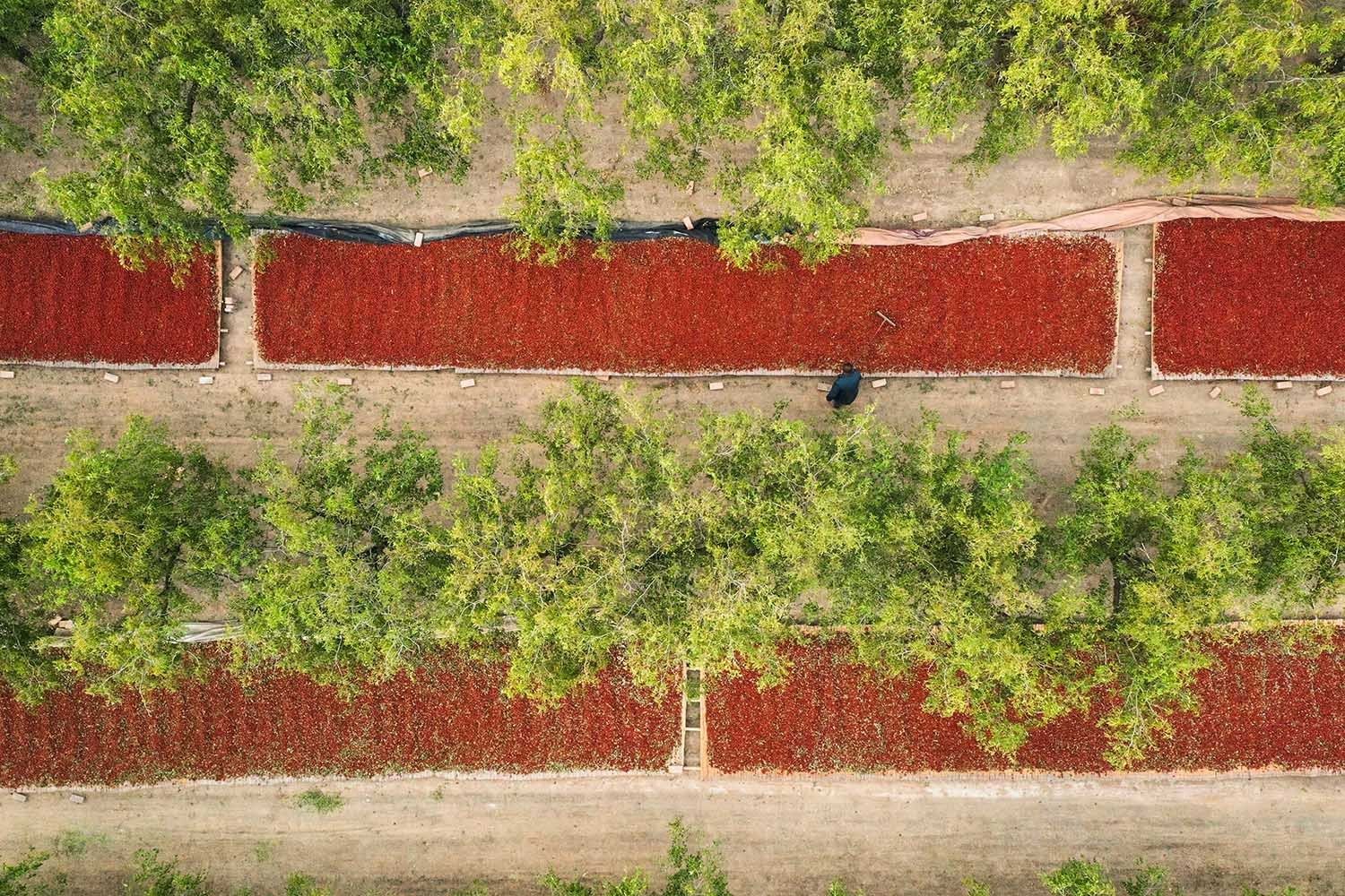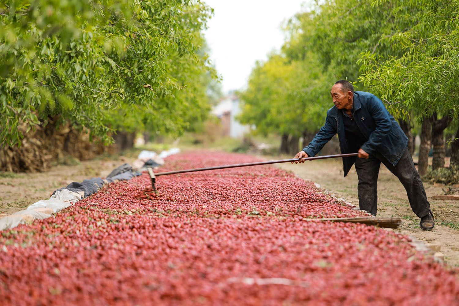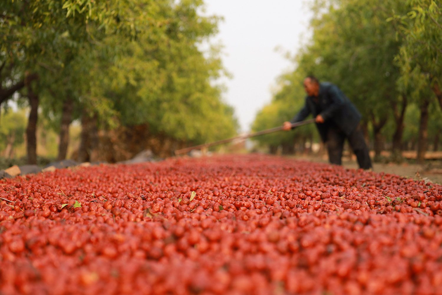 寒露时节,山东德州乐陵市10万亩金丝小枣喜获丰收,当地农民抓住晴好天气,抓紧收获、晾晒,田间地头一派忙碌丰收景象。