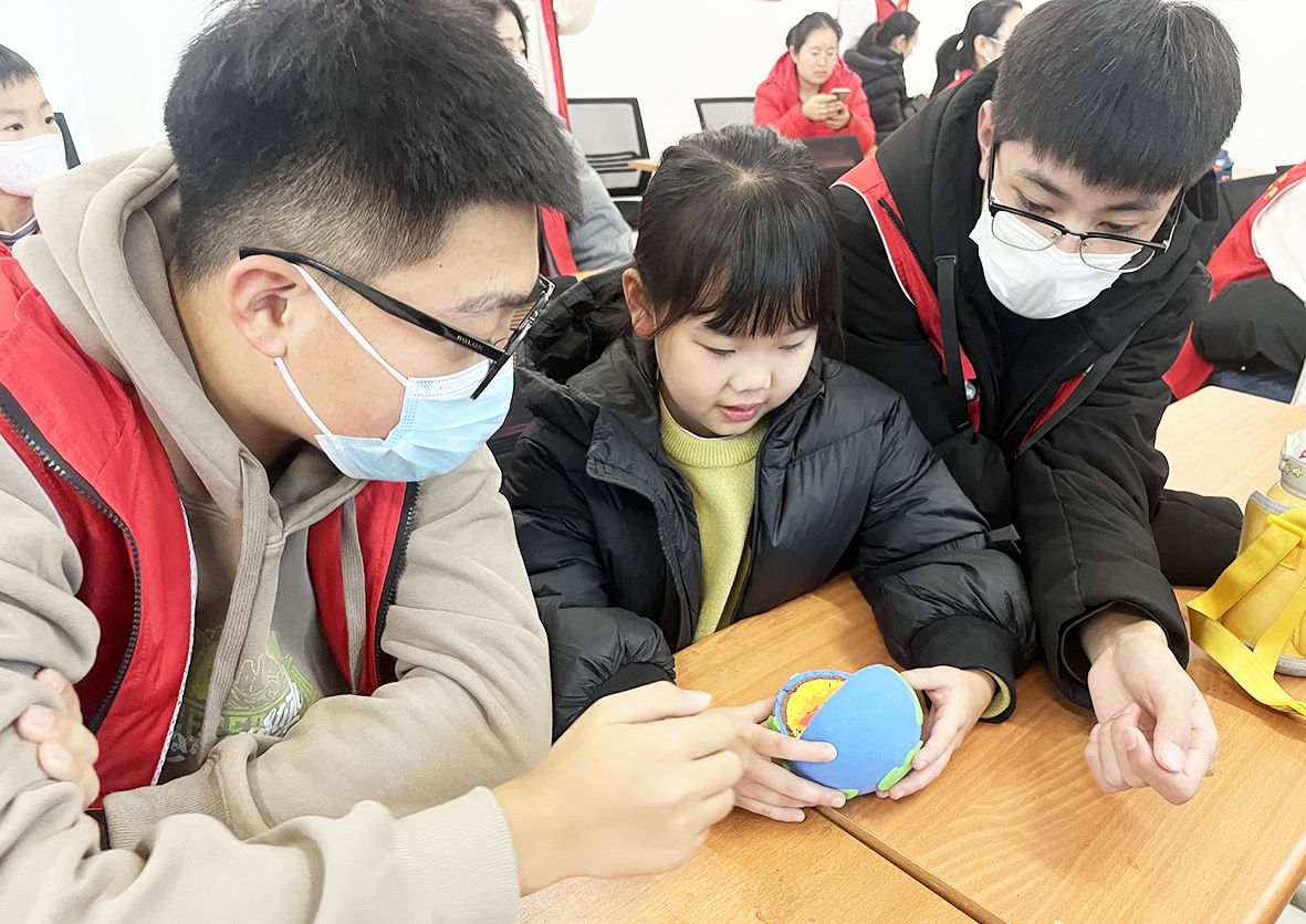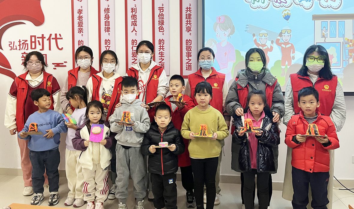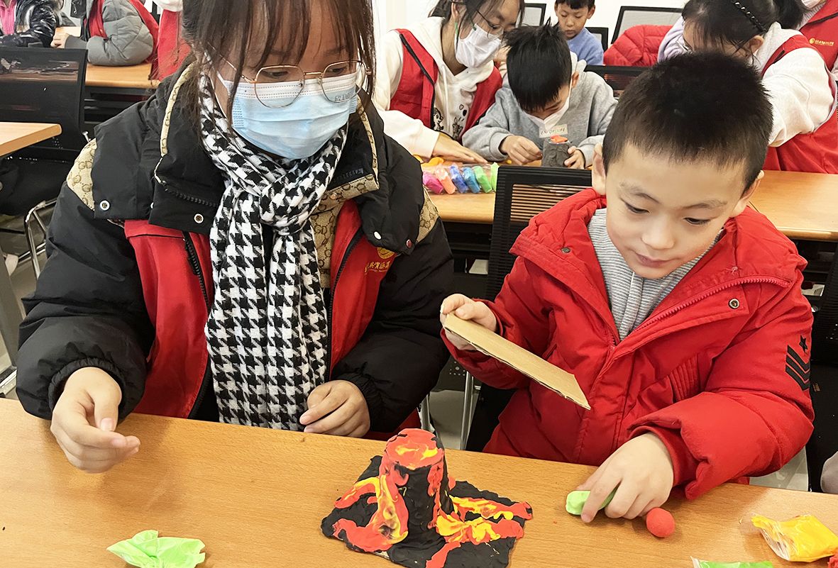 活动中,志愿者首先通过播放动画短片,让孩子们直观了解什么是地震、地震前大自然会有哪些征兆、地震发生后如何进行自救等内容,并详细为大家介绍了室内避震措施、应急避难场所标识、常用求救电话等知识。随后,为了让孩子们更直观地了解地震的成因及危害,志愿者带领大家用太空泥进行地震模拟实验,孩子们纷纷发挥自己的想象力,动手制作一个个模型,在模拟实验中加深对地震知识的理解和记忆。