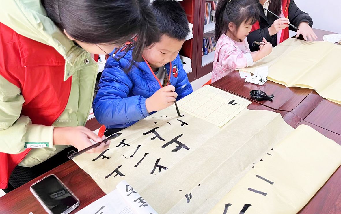 “大家在书写过程中要注意握笔姿势,抬头挺胸,起笔轻、落笔重、收笔稳……”活动中,大学生志愿者首先为孩子们讲解了毛笔字的基本理论知识。接下来,志愿者采取一对一教学的方式,帮助孩子们掌握毛笔字的正确书写姿势、方法和要领。孩子们边看边学,一笔一划的反复练习,体验毛笔字的独特魅力。“学习毛笔字不仅能有助于我掌握正确的书写姿势,同时还磨炼了我的耐心,丰富了课余生活。”朱德浚小朋友开心地说。