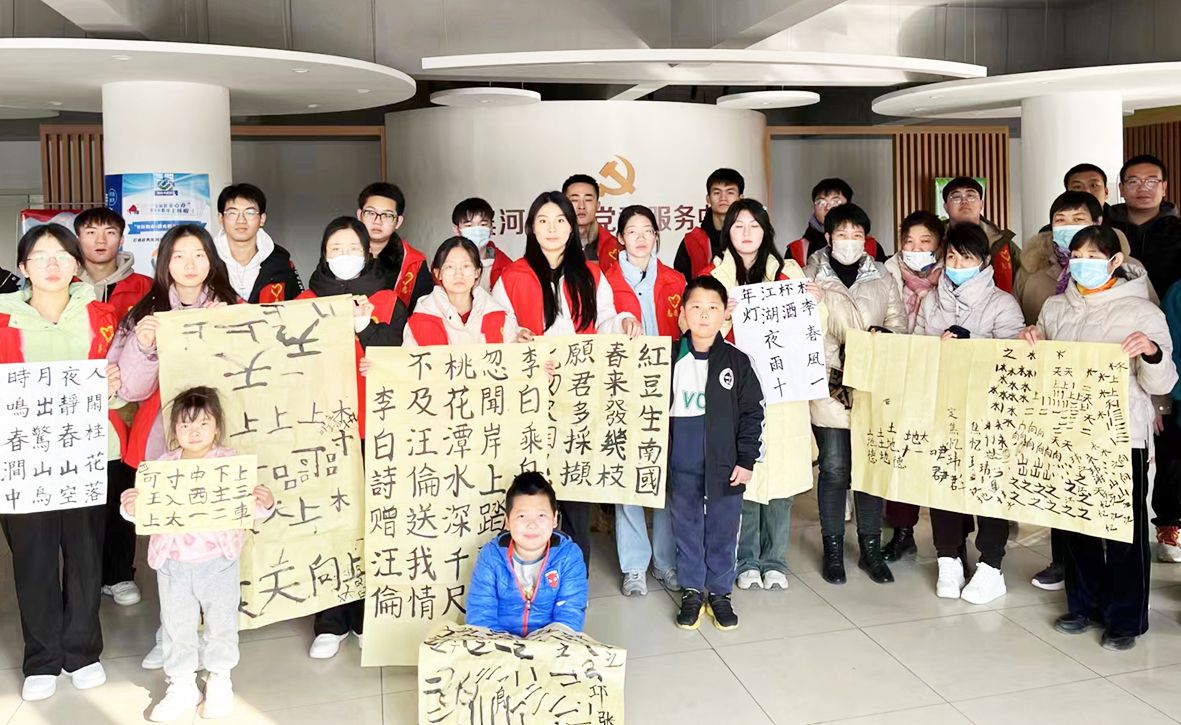 12月9日,天衢新区宋官屯街道滨河社区联合山东华宇工学院开展“墨香溢华彩 书法进社区”活动。