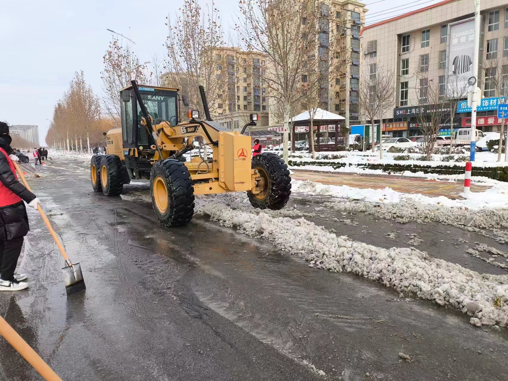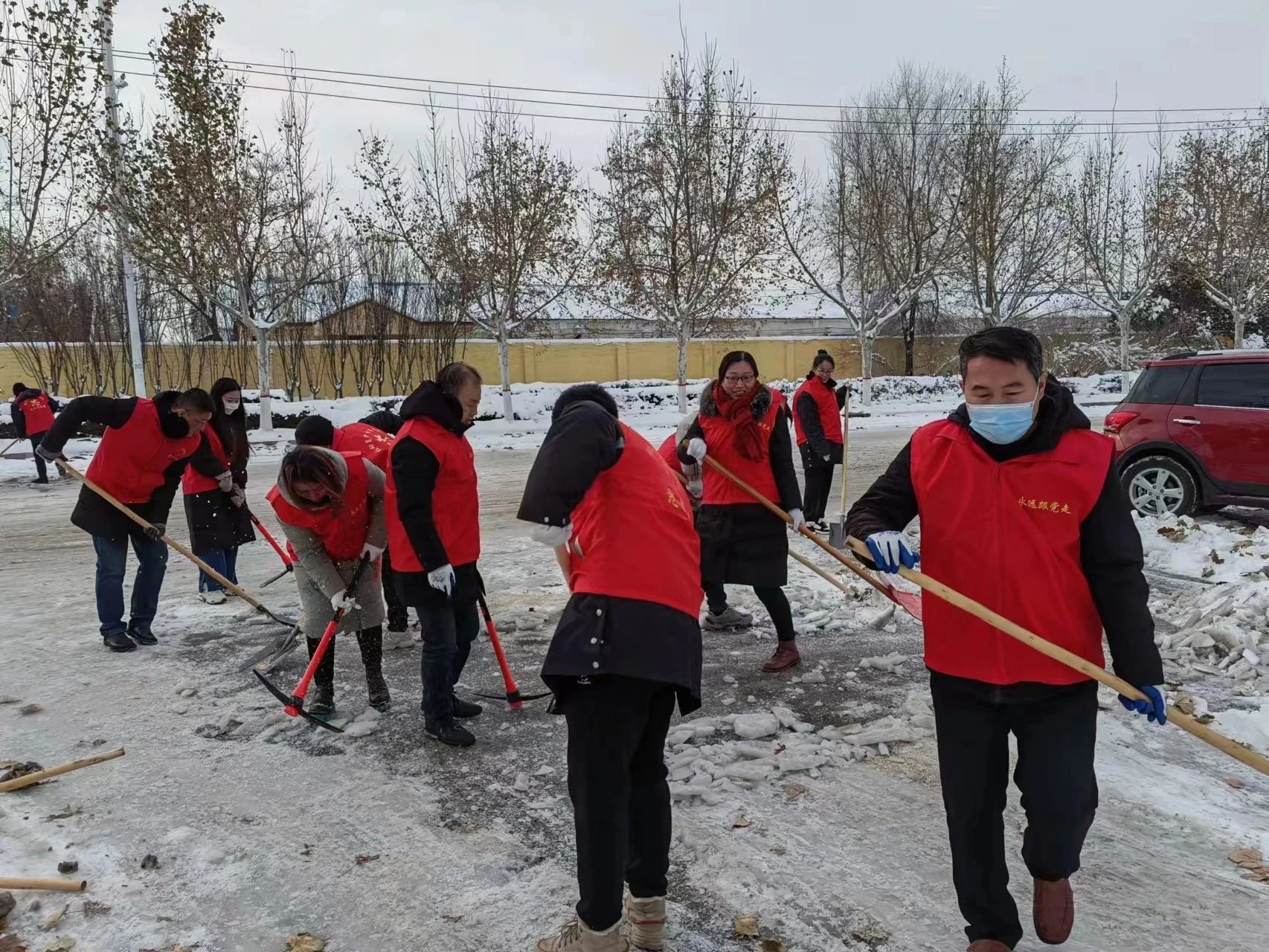 锦纺街、中山街、西城街、九龙街……随处可见“志愿红”。据悉,自发布全民清雪倡议书以来,夏津县各机关单位、公安消防、交管民警、企业职工、沿街商铺、社区工作者、物业、居民、志愿者纷纷拿起除雪工具,将压实的冰雪道路一点点凿碎清理。