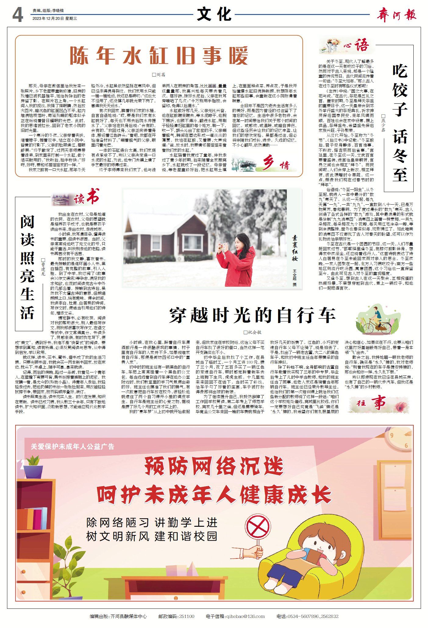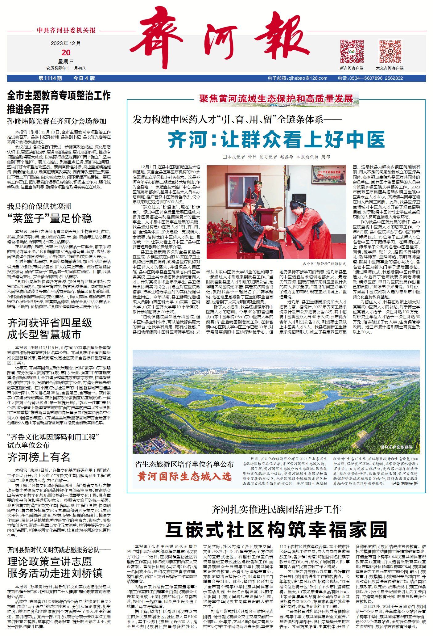 齐河县新闻周报(12月14日至12月20日) ©原创 2023-12-20 07:55 德州日报 0 ▶让群众看上好中医,齐河构建中医药人才“引、育、用、留”全链条体系。(点击查看详情) ▶齐河县马集镇:文旅兴农 奏响黄河岸边致富曲。(点击查看详情) ▶齐河县“齐·发现”品牌 | 童趣科普 点亮科学梦想。(点击查看详情) ▶德州市文明校园齐河职专 | 抓实“六个好” 成人又成才。(点击查看详情) ▶文化丨陈年水缸旧事暖(外三篇)。 德州日报新媒体出品编辑|李晓楠审核|钟伟 终审|尹滨 (作者:德州日报)