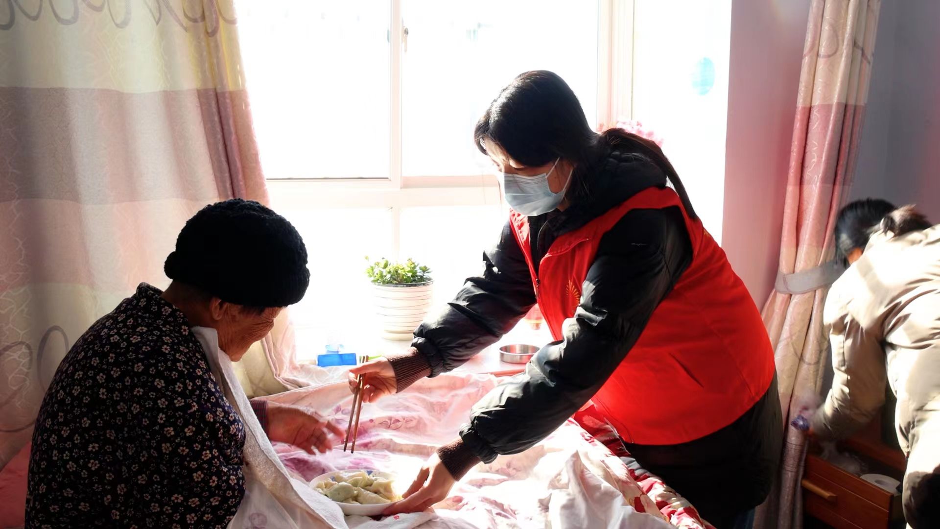 安居社区党委书记石洪刚带领社区工作人员和志愿者把煮好的饺子打包,送到辖区活动不便、独居特困等困难居民家中。“我岁数大了,腿脚不方便,没法去跟大家包饺子,这不社区给送了过来,还热乎着呢,真好啊!”92岁的王书荣吃着热腾腾的饺子,高兴得合不拢嘴。