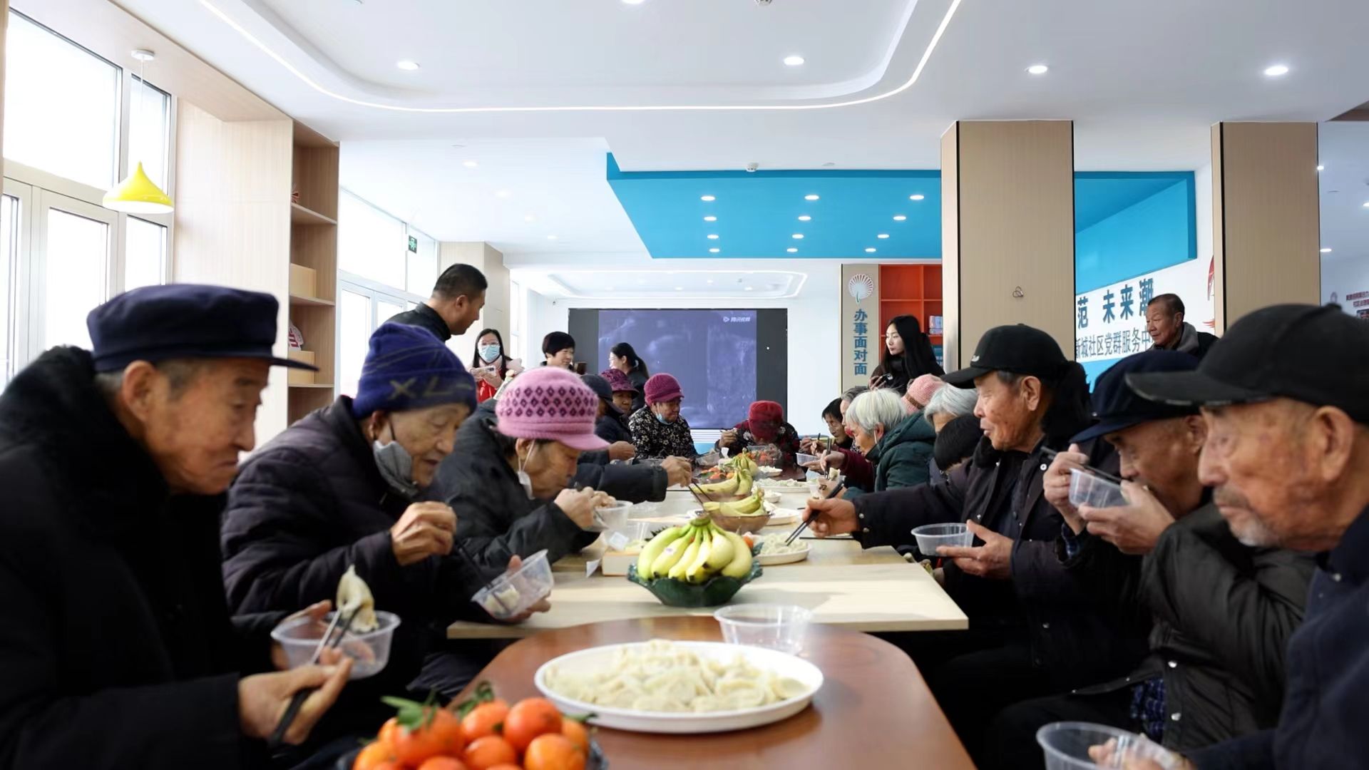 在乐陵市“乐邮”蒲公英聚乐部,邮政网点的志愿者邀请了附近社区的老人一起包饺子话家常,弘扬“尊老、敬老、爱老、助老”的好传统。