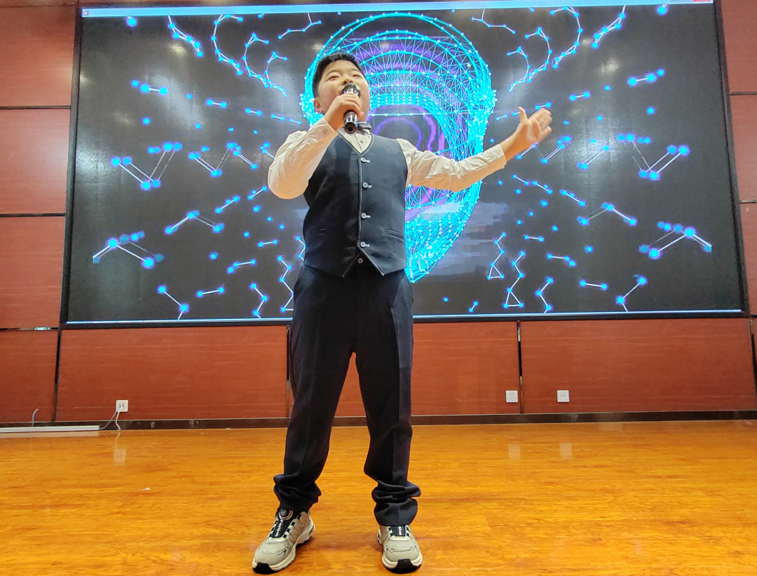 五·三班的王若旸演唱《微微》,五·二班祖睿哲带来歌曲《把未来点亮》,一·二班任书墨带来歌曲《给我一个拥抱》,二·四班路圻峰献唱歌曲《天之大》,一·四班韩颖昕演唱《我多想快快长大》,一·五班崔艺馨唱响《童心向党》,五·五班褚晓蕾倾情演绎《写给电影人的情书》,二·五班尹浩玥倾诉《有你就幸福》,三·五班方艺茹带来歌曲《一粒麦子》。